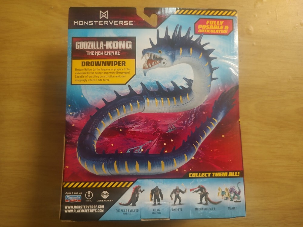 "Drownviper" Action Figure from Godzilla x Kong : The New Empire, in new "Monsterverse" reissue box. Figure stands approximately 6 inches tall, and is mint in original box. Produced in 2025 by Playmates Toys. Please see photos for exact condition of item.