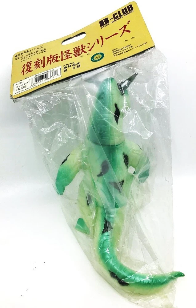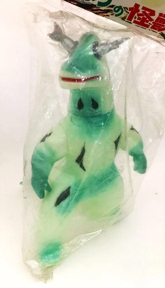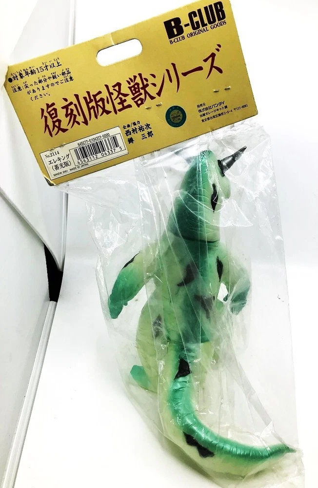 HOT FLASH! ELEKING, ULTRAMAN, ULTRA 7, GODZILLA AND ALL TOHO JAPANESE SCI-FI MONSTER TV & MOVIE FANS AND ULTRAMAN & GODZILLA MONSTER & KAIJU VINYL FIGURE COLLECTORS, CHECK THIS OUT! A RARE, ORIGINAL, AWESOME B-CLUB BULLMARK METALLIC GREEN & WHITE WITH BLACK & SILVER "ELEKING" MADE IN 1999 FROM THE ORIGINAL MOLD by the FABULOUS BULLMARK Co. AND THEN REPRO-ED BY BANDAI FOR ITS LEGENDARY "B-CLUB" OF BRILLIANT GOLDEN AGE MONSTERS - MINT, SEALED IN ITS HEADER BAG! THIS AMAZING TOUR de FORCE - GORGEOUS, BRUTAL, FEROCIOUS, 8 INCHES TALL VIRTUALLY GLEAMING WITH INCENDIARY BRILLIANCE IS MADE FOR THE FIRST AND ONLY TIME IN GLOW VINYL PAINTED WITH METALLIC GREEN AND BLACK AND SILVER SPRAYS! THIS VIRTUOSO FIGURE BRILLIANTLY BRINGS TO LIFE THE BODY OF THIS FANTASTIC MONSTER VINYL! HE RADIATES FULLY-ENGULFED FURY WHICH SURROUNDS HIS OTHER-WORLDLY SMOLDERING 'STALK-EYES'! IT'S ONE OF THE MOST BEAUTIFUL ELEKINGS EVER AND ARGUABLY THE MOST CLASSIC VERSION EVER MADE OF THIS FAMOUS MONSTER (AND I'VE SEE 100's)! IT IS THEE SOULFUL EXPRESSION OF JAPANESE MONSTERS! THIS GREAT SCULPT IS EMBLEMATIC OF THE EVIL IN ALL MONSTERS WITH ALL HIS HOSTILE INTENSITY AND HORRIFYING MAJESTY - TRULY ONE OF THE MOST QUINTESSENTIAL OF ALL ULTRAMAN MONSTERS. SEE THE PHOTOS - THOUGH THEY DON'T DO HIM JUSTICE!! THIS FIGURE IS VERY RARE and WAS SHORT RUN - 25 YEARS AGO!!! AND IS A MUST FOR ANY VINYL KAIJU COLLECTOR OR FAN! SO DON'T MISS IT! THIS IS YOUR CHANCE TO GET ONE MINT AND, AT A CRAZY LOW, GREAT PRICE. (I HAVE MANY VINYLS UP ON AUCTION RIGHT NOW! AS WELL AS ALL OTHER KINDS, COMPANY MAKES, CHARACTERS, etc., GOING BACK 60 YEARS, THAT ARE AWESOME, UP ON AUCTION TOO - LOOK FOR THEM - if you buy others you can combine them for shipping and SAVE $ !!!!!). THE GREAT FIGURES OF THE LAST DOZEN YEARS ARE DISAPPEARING FROM THE WORLD MARKET FAST AND ARE NOT BEING REPLACED! PRICES HAVE NOT BEEN THIS GOOD IN OVER A DECADE! WHAT A GIFT FOR THE COLLECTOR WHO THINKS S/HE HAS IT ALL! THIS IS MY LAST ONE !!!! sold out in Japan!