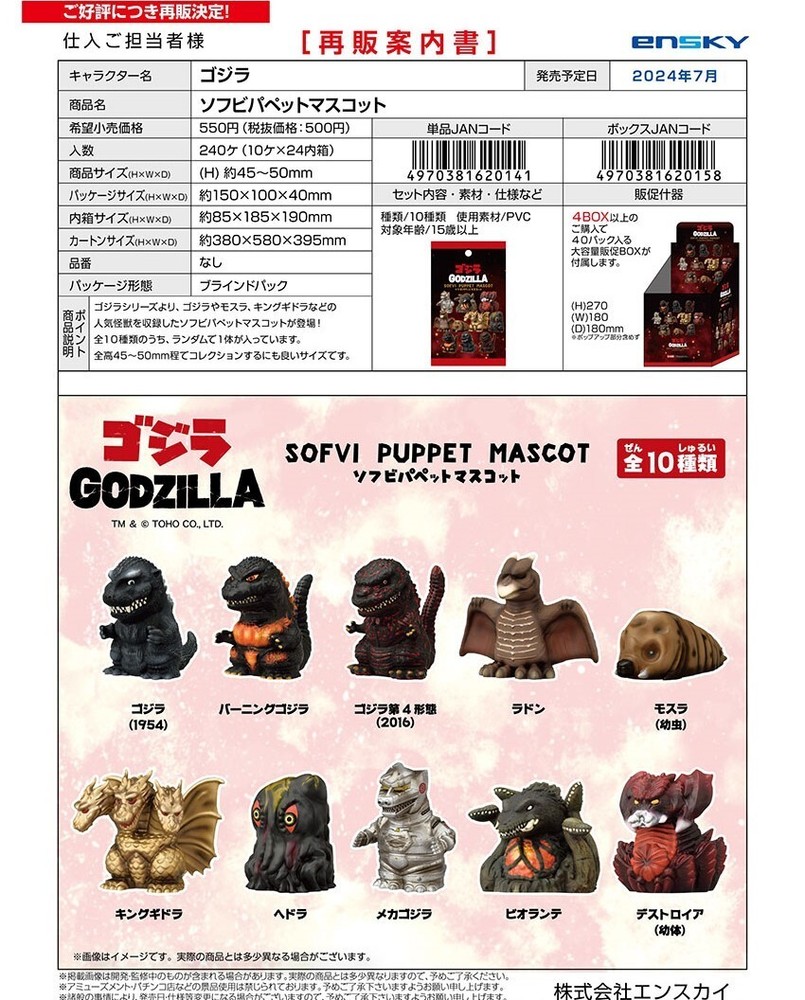 The selling price does not include any local country duties. Duties are to be paid by the recipient. ENSKY Godzilla Sofvi puppet mascot Figure "10 packs in 1 box" TOHO King Ghidorah Introducing Sofvi puppet mascot featuring popular monsters such as Godzilla , Mothra, and King Ghidorah! One of a total of 10 types is included.With a total height of 45-50mm, it is a good size for collection . Total 10 kindsSet includes: 1 colored mascotOne of the 10 types is included in the set. Sold in boxes of 10 packs per box. Size: (H) about 45-50mm (slightly different depending on the type) Material: PVCAges:15 and up