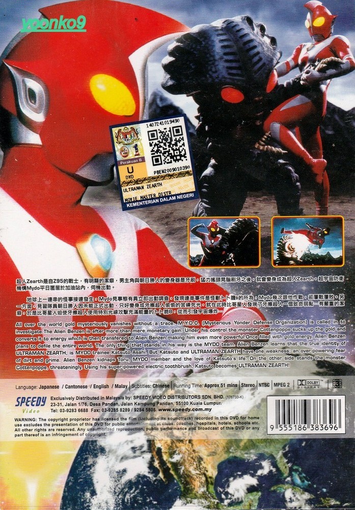 Title Name Ultraman Zearth 1st Story No of Disc 1Disc Version English / Japanese / Cantonese / Malay ( Option ) Subtitles Chinese Format DVD / NTSC & All Region Code Remark ( SDA 0042C ) 100% Brand New Sealed The item for sale are original items from Malaysia and certified original by Malaysian Govt and comes with government hologram sticker. DVD is new and sealed. Not bootlegs or pirated stuff here . All original and certified by govt. Shipping: Item delivery normally taken 14 -21 days to your destination, Tracking number will be provided upon request! Zone Destination Countries Estimated Delivery Time (Working Days) Notes 1 Brunei, Singapore 4 - 10 The estimated delivery time listed applies to major cities only. Delivery to area outside of major cities may incur additional days. Delivery time also is subject to custom clearance process. For registered item, additional 1 more day is needed because it is a recorded delivery. Cambodia, Hong Kong, Laos, Myanmar, Philippines, Thailand, Indonesia, Vietnam 4 - 10 2 Australia, Bangladesh, China, Fiji, India, Japan, Macao, Mongolia, New Zealand, South Korea, North Korea, Taiwan, Sri Lanka 5 - 11 Other countries 6 - 11 -We ship WORLDWIDE!! FREE TRACK NUMBER !! -The item will be delivered by Registered Airmail and stated as gift. -We will not be responsible for any delay during delivery including but not limited to customs postage checking, strike ETC. -Please allow us to send the item by 1 to 48 hours after receive/verify the payment depends on the queue ( exclude weekend ). -In most cases, no custom tariff duties are charged. However, if there are any, buyer is responsible for custom tariff duties solely. Please contact your country's custom before place and bid.Return Policy PAYMENT: -Only paypal -Please make your payment 2 days after you win the bid, easy for us to work on packing and ship the item! -Please make sure your shipping address is correct. We will only follow your address listed in the Paypal payment for the shipment. We have no responsibility for shipping address provided. Due to the secure reasons, we are not allowed the address change through email. Return Policy: -All sales are final and non negotiable. -100% Refund if the item was wrong upon you receiving. ( Please DO NOT open the seal if you want to return the item ) -Shipping cost is non refundable. Return shipping cost will be bear by the buyer. -Any question please do not hesitate to ask by ebay or email me! THANK YOU!! -If you meet any problem do deal it with us. As a serious seller, we will do our best to solve it! Please contact us before you are going to leave us a negative/neutral feedback.
