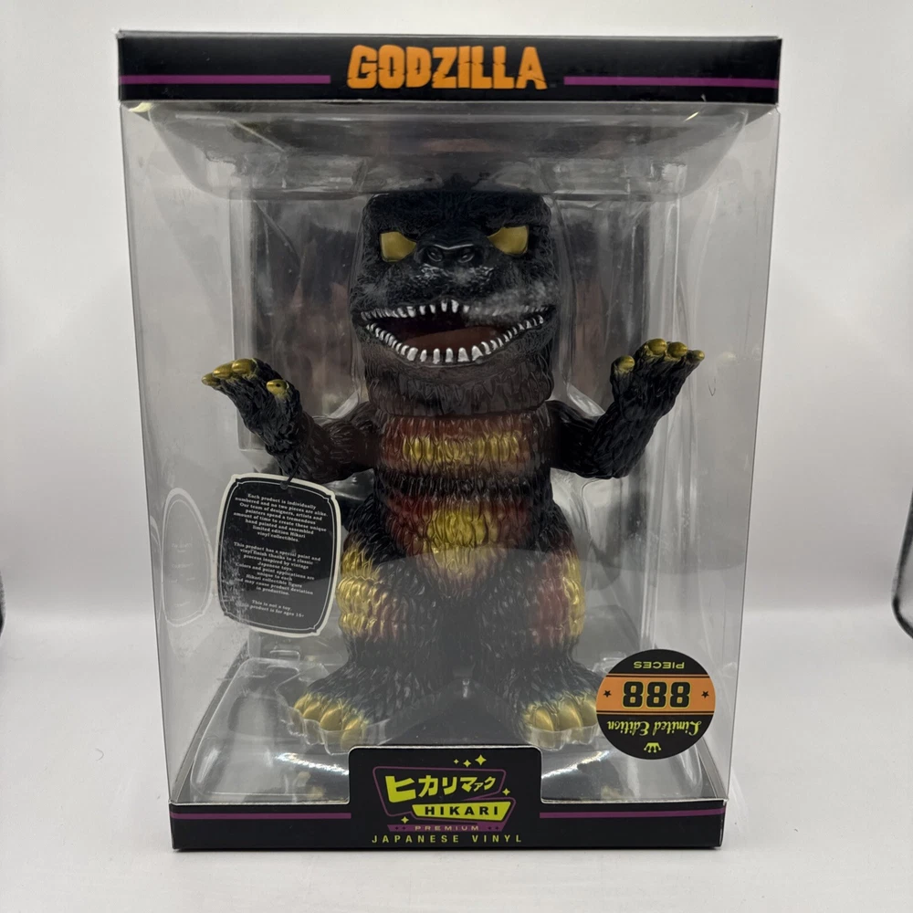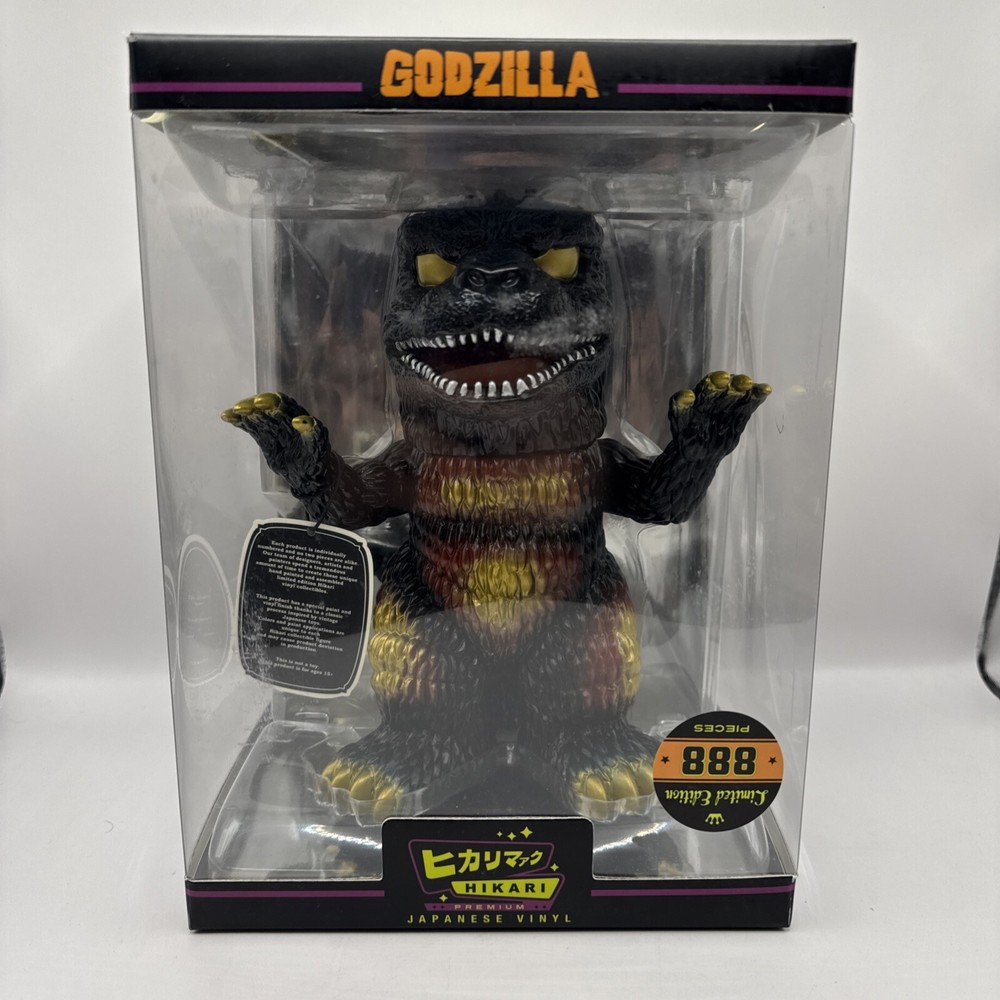 Up for sale is a rare Funko Hikari Burning Godzilla Gold LE 888 vinyl figurine. This collectible figure is a must-have for any Godzilla fan and is perfect for display or play. The figure stands approximately 3.75 inches tall and features the iconic Burning Godzilla design in stunning gold color. The product line is Hikari and the model is FUNKO HIKARI BURNING GODZILLA GOLD LE 888. Made of high-quality vinyl material, this figure is sure to last for years to come.