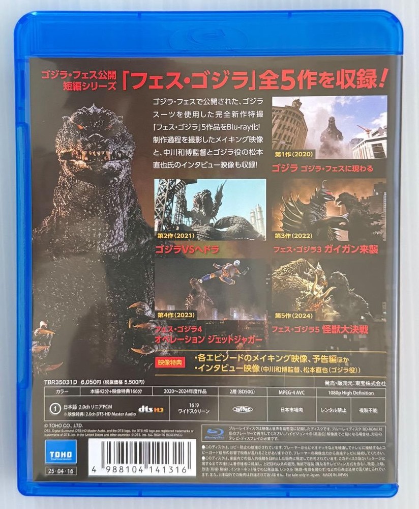 Fes Godzilla Blu-ray TOHO Short Film "Fes Godzilla" New Description Condition: New Release date: April 16, 2025 Number of discs: 1 (1 Blu-ray Disc Video) Running time: 208 minutes 18 seconds Language: Japanese "Godzilla Appears at Godzilla Fest" "Godzilla vs. Hedorah" "Fest Godzilla 3: Gigan Attacks" "Fest Godzilla 4: Operation Jet Jaguar" "Fest Godzilla 5: Great Monster Battle" Payment Please pay within 5 days after the auction closed. Shipping This item will be sent from Japan, with economy airmail parcel. Economy Shipping from 11 to 23 business days. We provide tracking number. Buy with confidence. Returns Returns are accepted ONLY if the item was not the item described. International Buyers - Please Note: * Import duties, taxes and charges are not included in the item price or shipping charges. These charges are the buyer's responsibility. * Please check with your country's customs office to determine what these additional costs will be prior to bidding/buying. * These charges are normally collected by the delivering freight (shipping) company or when you pick the item up - do not confuse them for additional shipping charges. * We do not mark merchandise values below value or mark items as "gifts" - US and International government regulations prohibit such behavior.