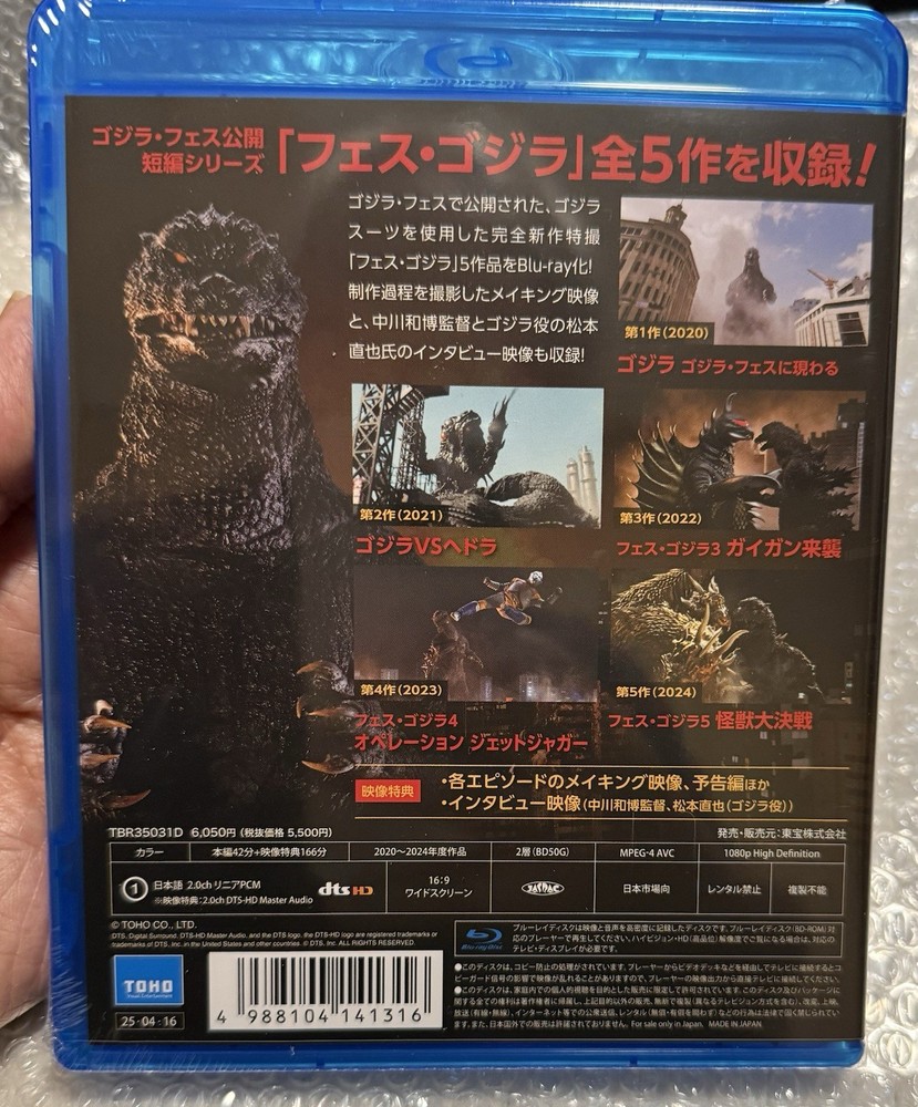 Contains the first five “Fes Godzilla” Godzilla battle films shown at Godzilla Festivals! Since Godzilla Fest 2020, the “Fes Godzilla” series directed by Kazuhiro Nakagawa has been released every year in conjunction with Godzilla Fest. In the second film, Godzilla fought a fierce battle with Hedorah, and in the third film, Geigan appeared and a deadly battle ensued. The fourth film, released last year, features Jet Jaguar and Godzilla's greatest rival, King Ghidorah! The fourth film, released last year, featured Jet Jaguar and King Ghidorah, Godzilla's greatest rival! The year is 2024. Godzilla and Jet Jaguar finally confront King Ghidorah in “Godzilla Fest 2024,” the 70th anniversary of Godzilla's birth and a big anniversary year! Fes Godzilla 5: The Great Battle of the Monsters” was unveiled! The five films in the series, including this film, which can be considered the culmination of the Fes Godzilla series that has grown in scale with each successive installment, are now available on Blu-ray! The special features include a making-of featurette that can only be seen here, which captures the production process of each of the five episodes of the series, as well as interviews with director Kazuhiro Nakagawa and Naoya Matsumoto, who played Godzilla in the previous “Fes Godzilla” series! <Blu-ray (1 disc) Main (42 min.) + bonus footage (166 min.) / Single layer (BD25G) / 1080p High Definition 16:9 Widescreen Sound: Japanese 2.0ch Linear PCM Subtitle: None <Contents (tentative) Godzilla: Godzilla Appears at the Godzilla Fest Godzilla vs. Hedorah Fes Godzilla 3: Gigan Attacks Fes Godzilla 4 Operation Jet Jaguar Fes Godzilla 5: The Great Battle of the Monsters <Special features (tentative) Making of each episode, trailers, and interviews with director Kazuhiro Nakagawa and Naoya Matsumoto (Godzilla) What is the Fes Godzilla series? Starting with “Godzilla: Godzilla Appears at the Godzilla Festival” at Godzilla Fest 2020, this series of short special effects films focusing on suits and miniature work has been presented at Godzilla Fest every year. Each time since the following year, the series has focused on a confrontation between Godzilla and a monster, including the pollution monster Hedorah in “Godzilla vs. Hedorah” in 2021, the cyborg monster Geigan in “Fes Godzilla 3: Geigan Attacks” in 2022, and the electronic robot Jet Jaguar in “Fes Godzilla 4: Operation Jet Jaguar” in 2023. Fes Godzilla 4: Operation Jet Jaguar” in 2023, the electronic robot Jet Jaguar and King Ghidorah appeared in each film and confronted Godzilla. Kazuhiro Nakagawa directed the first film, and also directed “Fes Godzilla 5: The Great Battle of the Monsters”. Translated with DeepL.com (free version)