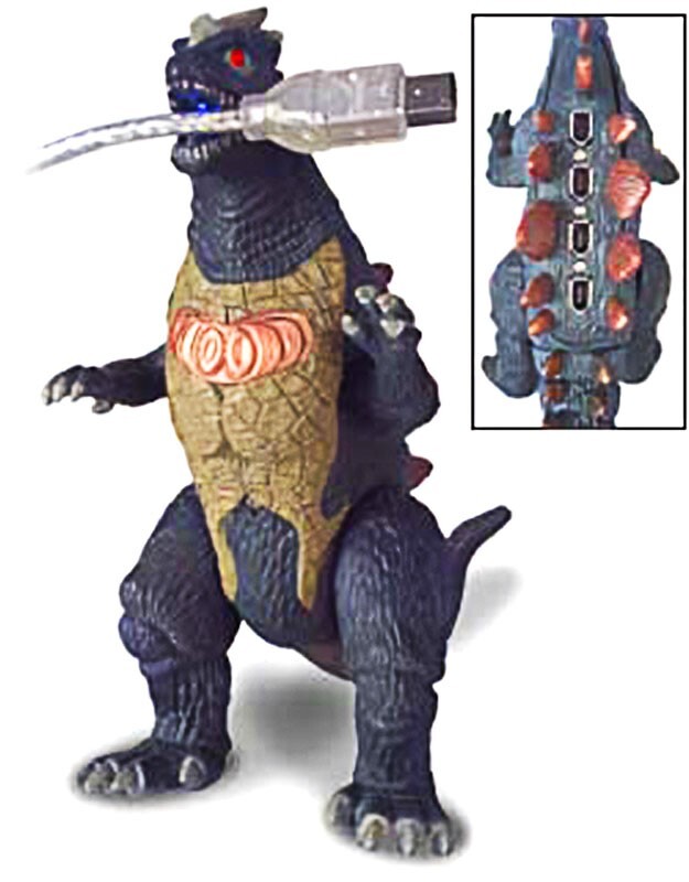 Fire Dino Hub - Godzilla FireWire Hub (Hubzilla) – 2002 Rare Retro Collectible Discover a unique piece of tech nostalgia with the Charismac Fire Dino Hub, also known as Hubzilla. This rare, like-new 4-port FireWire 400 hub is modeled after Godzilla and is perfect for vintage Apple enthusiasts. Item Details: Manufacturer: Unknown Distributor: Charismac Year: 2002 Condition: Used, like new Included: Hubzilla Hub, a 6-pin FireWire cable, and power cable (original box not included) Key Features: Rare Collectible: Extremely hard to find and originally available in limited quantities between 2002-2003. Unique Design: Modeled after Godzilla with detailed sculpting, red LED eyes, and a glowing light in its mouth. 4-Port FireWire 400 Hub: Expands your computer’s FireWire connectivity for devices like hard disks, video cameras, and CD/DVD recorders. Pin Connectors: Hub features four 1394 6-pin female FireWire connectors along the back of Godzilla Nostalgic Appeal: Perfect for retro Apple setups, adding a fun, conversation-starting piece to your collection. Fully Functional: Offers reliable 400 Mbps data transfers and meets 1394/FireWire standards with no drivers required. Why You’ll Love It: A standout collectible that combines vintage design with practical connectivity. Ideal for collectors who appreciate unique, retro tech that recalls the golden era of early Apple computers. Grab this rare Hubzilla Fire Dino Hub today and add a piece of tech history to your desk!