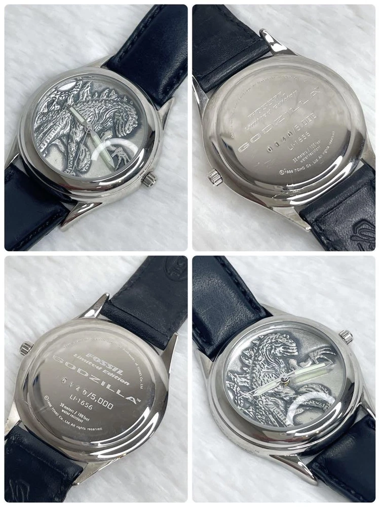 Fossil Godzilla Limited 5000 Pieces Collectible Rare Figure Key Features - Brand: Fossil - Model: LI-1656 - Style: Vintage, Retro, Limited Edition - Features: Limited to 5000 pieces, quartz movement, men's wristwatch - Dial Color: Silver with Godzilla design - Band Color: Black - Case Size: Approximately 40mm (including crown) - Band Width: About 20mm - Case Material: Metal - Band Material: Leather - Water Resistance: Not specified - Year Manufactured: Not specified - With Papers: No - With Original Box/Packaging: Yes - Indices: Not specified - Watch Shape: Round - Number of Jewels: Not specified - Case Finish: Not specified - Theme: Godzilla - Case Back: Not specified - Vintage: Yes - Band/Strap: Leather - Country/Region of Manufacture: Japan - Dial Pattern: Godzilla design - Bezel Type: Fixed - Case Specifications Brand Fossil Country Japan Product Description Description Please refer to the sales page images for accessories and condition.(Accessories not shown in the pictures will not be included.) If you need more information, please contact us via message. Shipping Ship within 6 business days after payment by either FEDEX, DHL or Japan Post. About Us We are located in Japan. It's our pleasure to make you happy by proposing our recommend item. If you have any questions or request about items' please feel free to ask us. International Buyers - Please Note: -Import duties' taxes' and charges are not included in the item price or shipping charges. These charges are the buyer's responsibility. -Please check with your country's customs office to determine what these additional costs will be prior to bidding/buying. -These charges are normally collected by the delivering freight (shipping) company or when you pick the item up - do not confuse them for additional shipping charges. -We do not mark merchandise values below value or mark items as - gifts - The US and International government regulations prohibit such behavior. Thank you for your understanding.