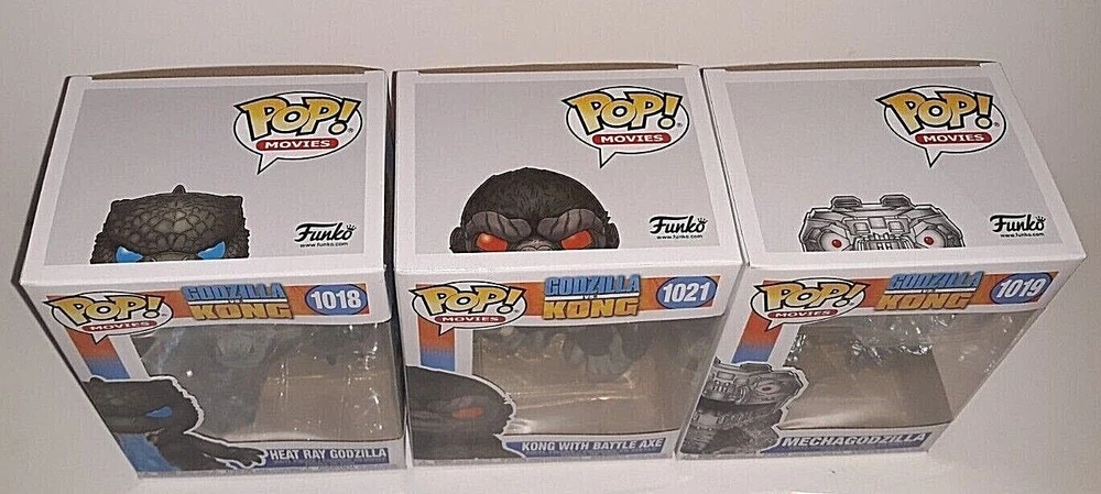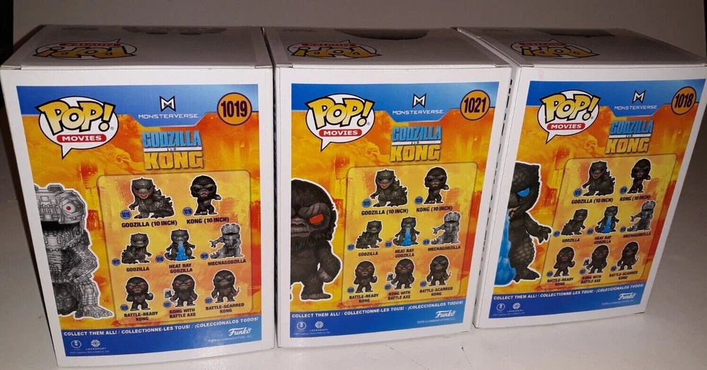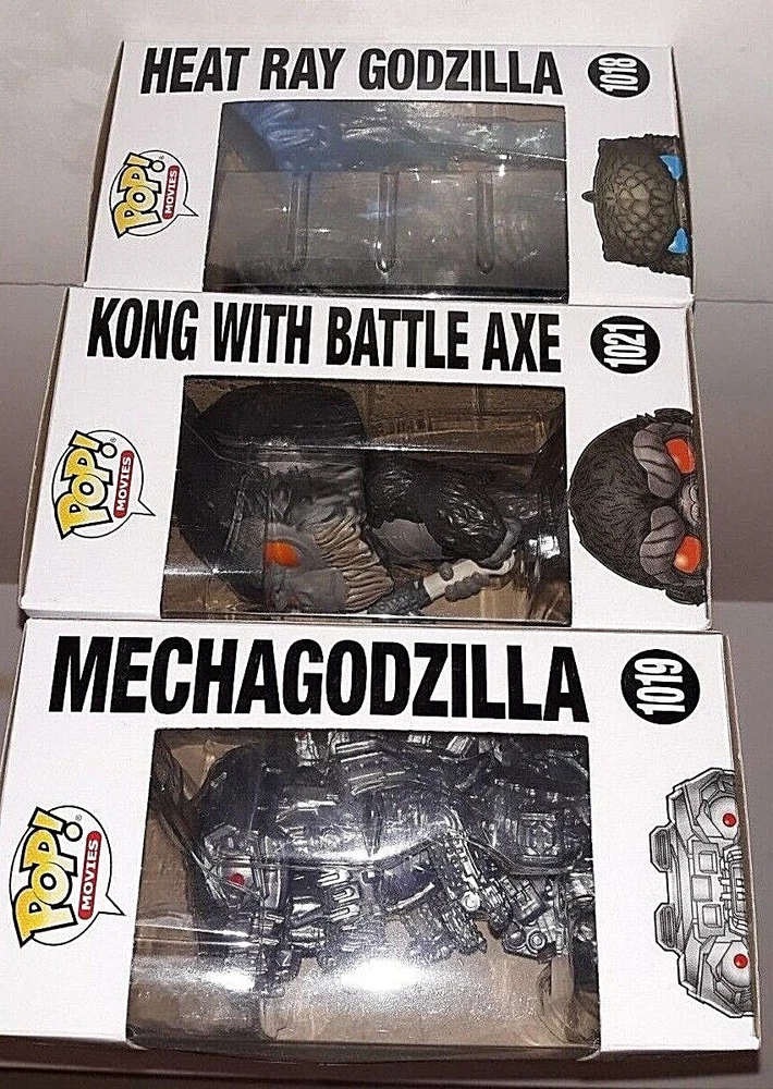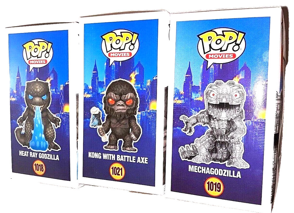 Funko Pop Godzilla VS King Kong Lot & Mechagodzilla 1021 1019 1018 This Funko Pop Godzilla VS King Kong Lot includes three figures: Mechagodzilla 1021, 1019, and 1018. These vinyl action figures are in 1:20 scale and were manufactured in 2017. The set features characters from the Godzilla franchise and includes a boxed package. The items are suitable for ages 3 and up and are original, licensed reproductions. The Pop model is a modern era collectible and is not vintage. The lot is perfect for fans of TV, Movie & Video Games themes and is a great addition to any collection.