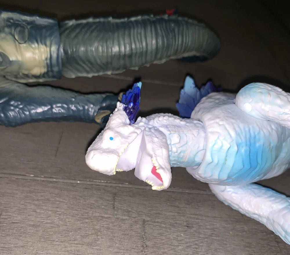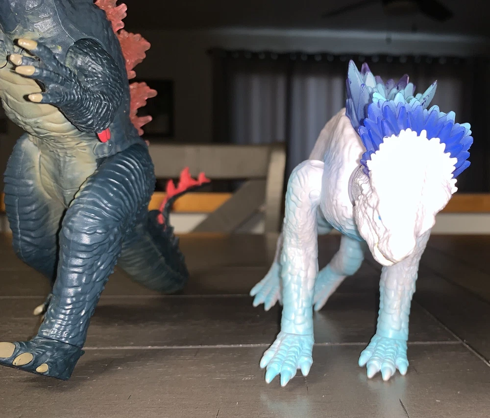 Godzilla does make noises when button is pressed- the SHIMO does not have the fire breath piece Godzilla also has a price on the bottom of his foot that I couldn’t get off. The "GODZILLA MAKES NOISE KONG NEW EMPIRE SHIMO 6" LEGENDARY FIGURE" is a 6-inch action figure of the character Shimo from the TV show "Godzilla X Kong The New Empire." This original Playmates figure is from the Godzilla franchise and is part of the Godzilla X Kong series. It features Shimo with a white color scheme, made of plastic material, and includes an accessory. The figure is recommended for ages 4 and up and is a non-customized, non-vintage collectible from the year 2024.