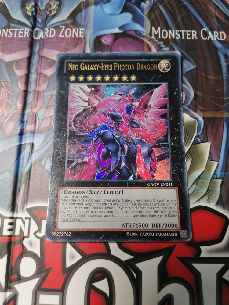 Up for sale is a stunning Yu-Gi-Oh! TCG card, GA0V-EN041 Neo Galaxy-Eyes Photon Dragon. This card is a highly sought-after Ultimate Rare version, featuring a stunningly detailed design that any fan of the game would love to add to their collection. This card is in excellent condition, with no flaws or damage to speak of.This card is an Effect type card, perfect for adding some serious power to your deck. Whether you're a seasoned player looking to add some new cards to your collection or a new player just starting out, this card is a must-have. Don't miss out on the chance to own this incredible card today!