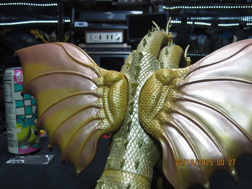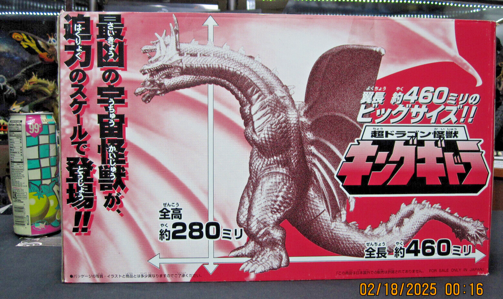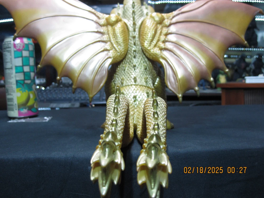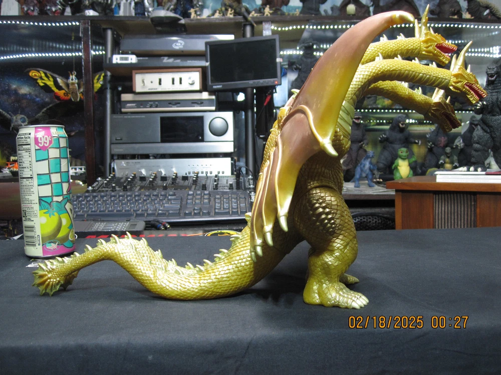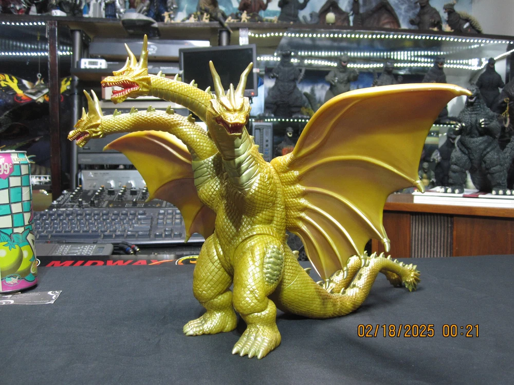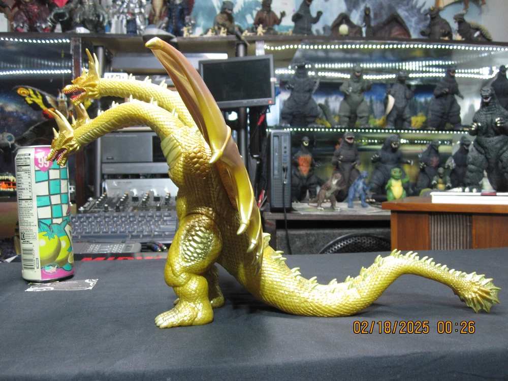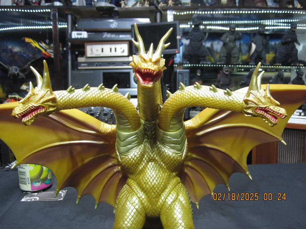 This is a rare find for collectors and fans of the Godzilla franchise. This 1998 Bandai Grand King Ghidorah 12" vinyl figure is a must-have for any serious collector. The figure comes with its original box, making it a great addition to any display. The King Ghidorah action figure is part of the Toho Monster Series and features intricate details that make it stand out on any shelf. This Cretaceous King Ghidorah figure is made in China and is recommended for ages 17 and up. Don't miss out on the chance to own this piece of monster history. ““This Item was displayed in my collection for years. Like New Condition.””
