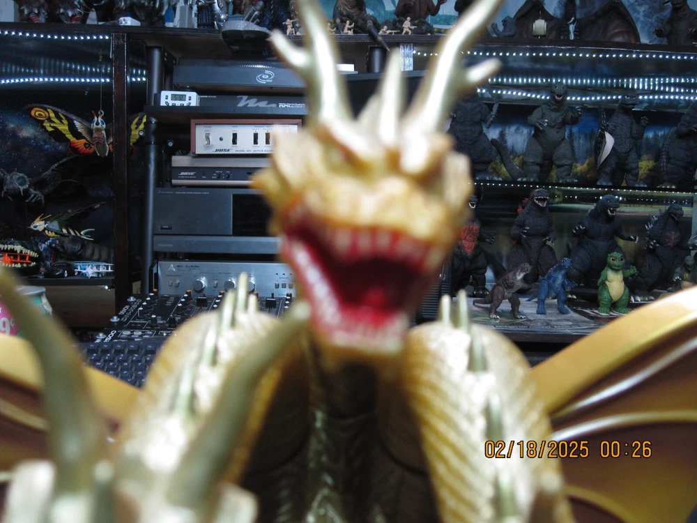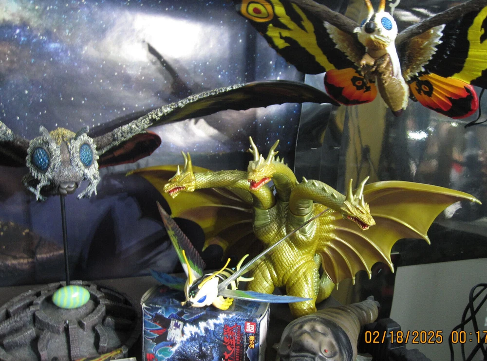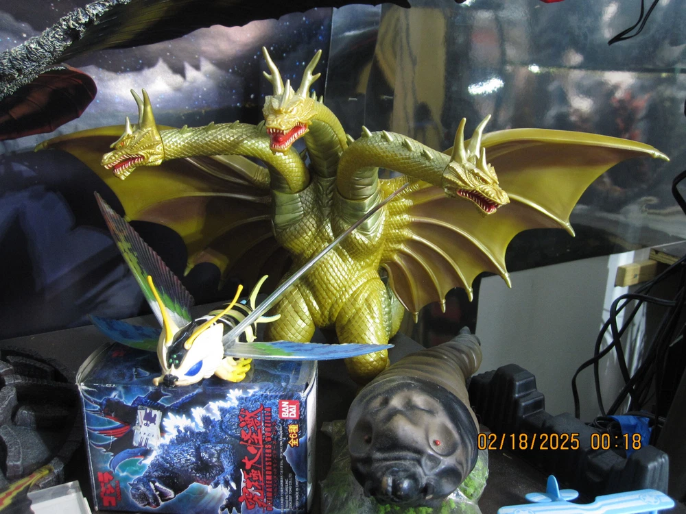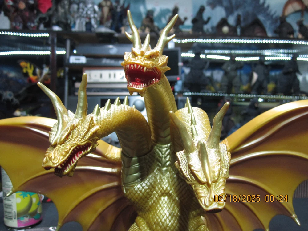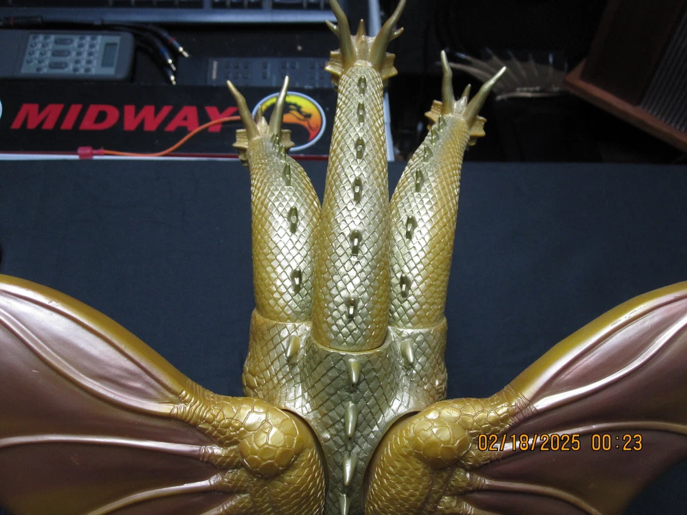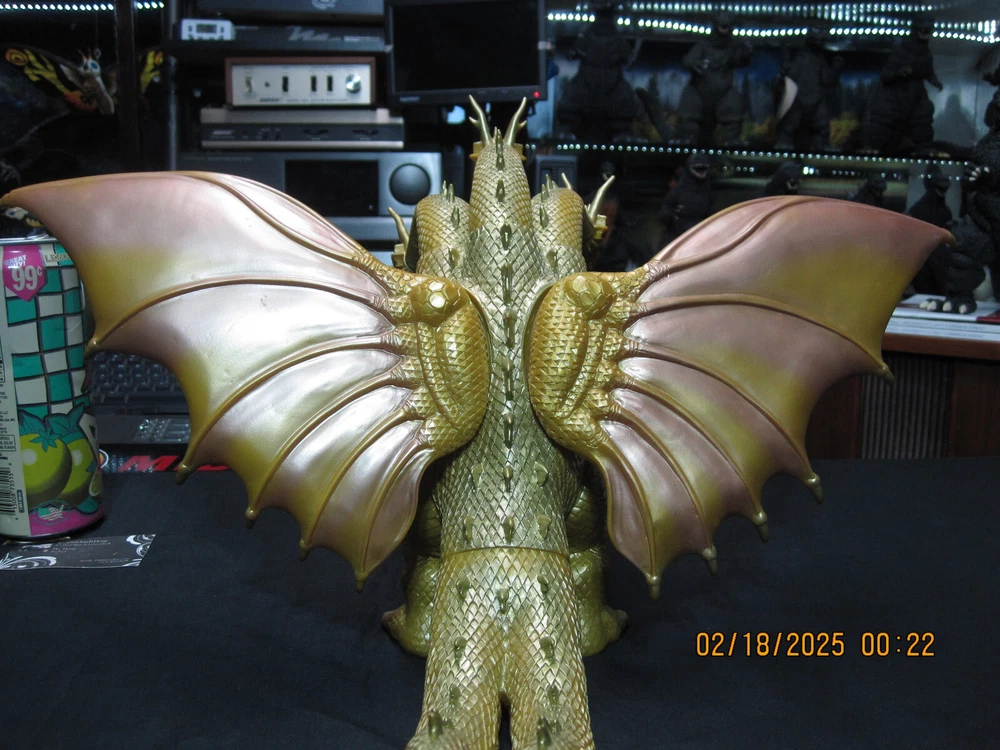 This is a rare find for collectors and fans of the Godzilla franchise. This 1998 Bandai Grand King Ghidorah 12" vinyl figure is a must-have for any serious collector. The figure comes with its original box, making it a great addition to any display. The King Ghidorah action figure is part of the Toho Monster Series and features intricate details that make it stand out on any shelf. This Cretaceous King Ghidorah figure is made in China and is recommended for ages 17 and up. Don't miss out on the chance to own this piece of monster history. ““This Item was displayed in my collection for years. Like New Condition.””