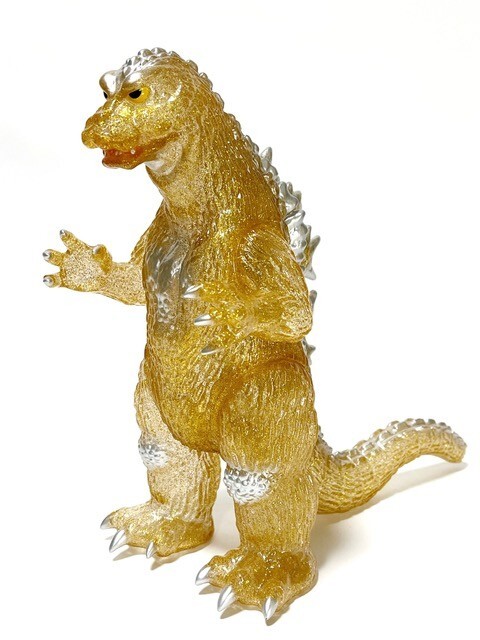 HERE NOW!!! HOT FLASH! GODZILLA 1964 AND TOHO JAPANESE SCI-FI MONSTER MOVIE FANS AND GODZILLA AND TOHO MONSTER FIGURE COLLECTORS, CHECK THIS OUT! THIS IS A BRAND NEW! RARE, ORIGINAL, AWESOME LTD ED, 2023 TOKYO TOY FESTIVAL PROMO EXCLUSIVE "1964" "GODZILLA KING OF THE MONSTERS" FROM THE GREAT TOHO MOVIE by the FABULOUS GIGABRAIN Co.! IT IS SMOLDERING, INCANDESCENT, LUMINOUS SEMI-TRANSLUCENT METALLIC GOLD VINYL IMPREGNATED WITH BLUE GLITTER!!!!! WITH YELLOW AND BLACK EYES AND ALL OF 9 INCHES TALL! IT'S THE NEW DISCO!!! SO DARN RARE!!!!!!!!!!! THIS GREAT SCULPT IS THE SOUL OF GODZILLA 1965 WITH ALL HIS MONSTROUSLY BLISTERING COOL AND SOULFUL DEMEANOR - TRULY ONE OF THE COOLEST OF ALL GODZILLAS. SEE THE PHOTOS (the clear shot, out of bag, is of mine, yours will be MINT! IN HEADER BAG! SEALED!!! THIS IS AN AMAZING FIGURE!!!!!!!!!!!!!! THIS FIGURE IS VERY RARE and SHORT RUN AND A MUST FOR ANY GODZILLA COLLECTOR OR FAN! SO DON'T MISS IT! THIS IS YOUR CHANCE TO GET ONE MINT AND, AT A CRAZY LOW, GREAT PRICE. YIPPEEE! (I HAVE MANY VINYLS UP ON AUCTION RIGHT NOW! AS WELL AS ALL OTHER KINDS, COMPANY MAKES, CHARACTERS, etc., GOING BACK 60 YEARS, THAT ARE AWESOME, UP ON AUCTION TOO - LOOK FOR THEM - if you win others you can combine them for shipping and SAVE $ !!!!!). OFFERED HERE AT A REALLY LOW PRICE!!! BUYER PAYS SHIPPING, HANDLING AND INSURANCE WITH PAYPAL (OR EMAIL ME FOR OTHER PAYMENT METHOD OPTIONS BEFORE BUYING!). BUYER MUST SEND PAYMENT WITHIN 2 DAYS. THANKS TO FOR LOOKING! BUYERS FROM OUTSIDE THE USA MUST PAY FOR PRIORITY INSURED SHIPPING. THE GREAT FIGURES OF THE LAST DOZEN YEARS ARE DISAPPEARING FROM THE WORLD MARKET FAST AND ARE NOT BEING REPLACED! PRICES HAVE NOT BEEN THIS GOOD IN OVER A DECADE! GOOD LUCK! THESE ARE SOLD OUT IN JAPAN!!!!!! THIS IS MY LAST ONE!!!