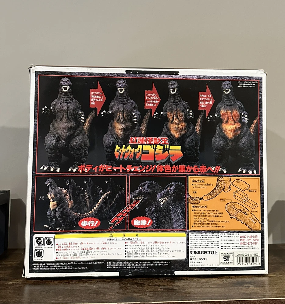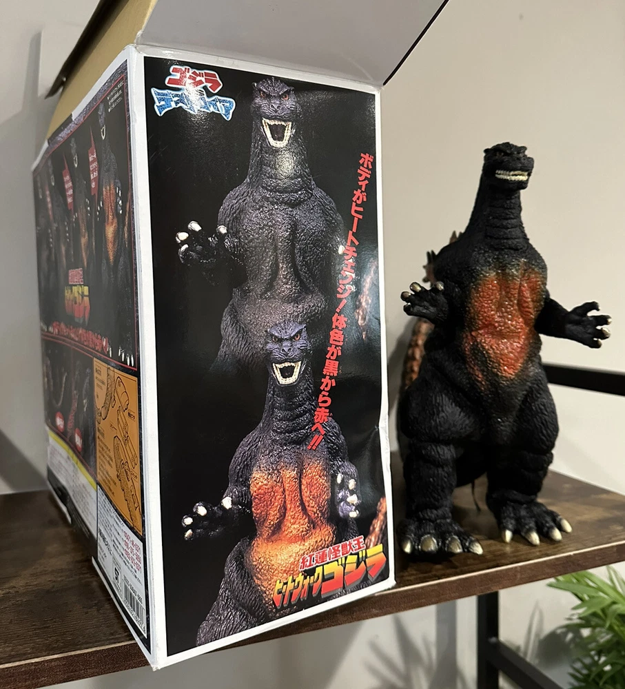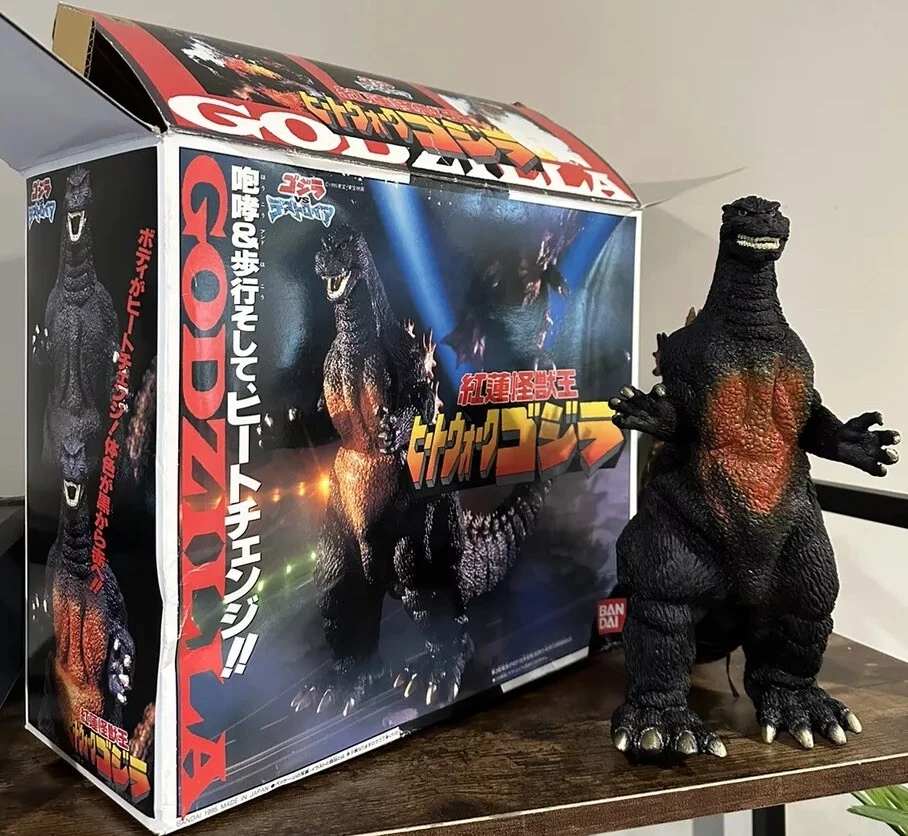 This is a rare Bandai Godzilla toy from 1995 featuring Godzilla vs Destoroyah. It's in great working condition and perfect for any collector or fan of the Godzilla franchise. The toy was manufactured in China and includes detailed features of the iconic monster. This particular version is highly sought after and a must-have for any Godzilla enthusiast. The toy is branded by Bandai and the year of production was 1995. Buy now and add this amazing piece to your collection… Arrives Ready To Operate! 11.5” tall Removable Tail 9.5” Includes the required 8 x AA Batteries. Please see pics for item condition detail close ups. Check out our other auction to scoop up Destotoyah as well.