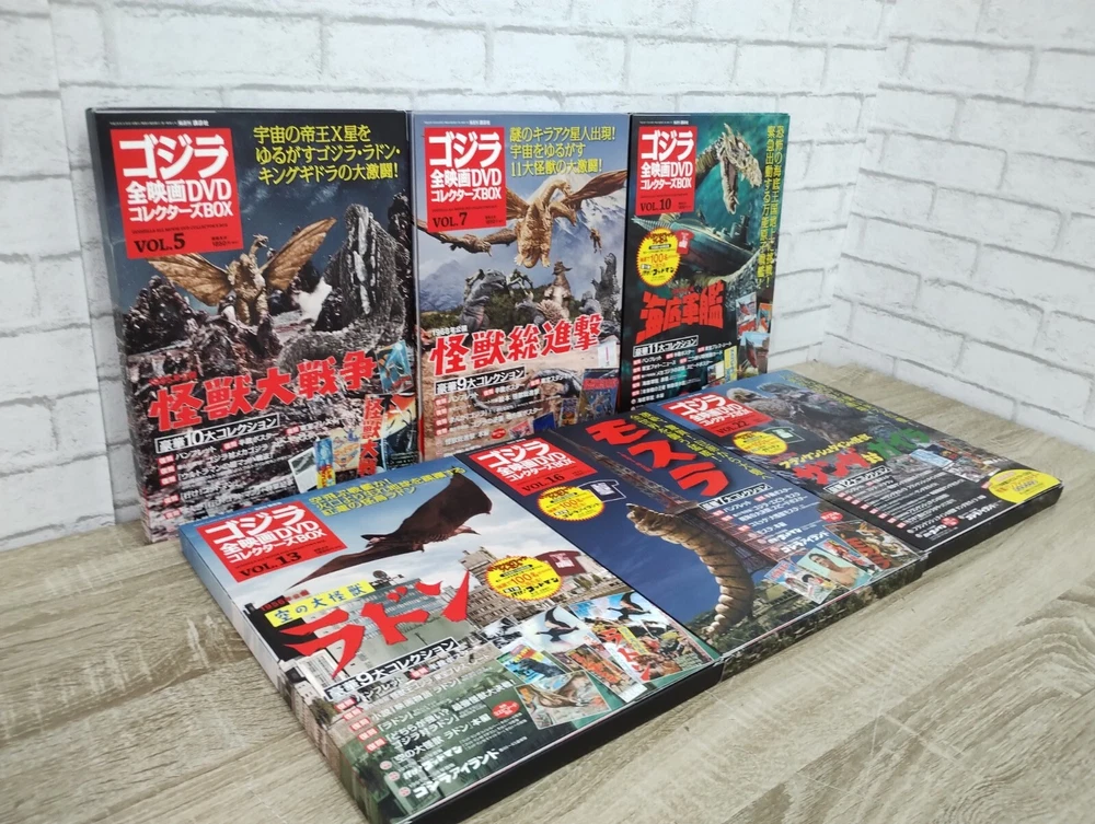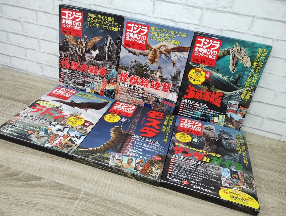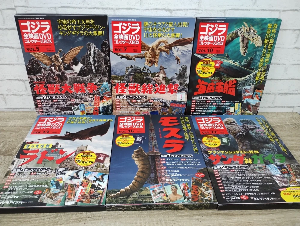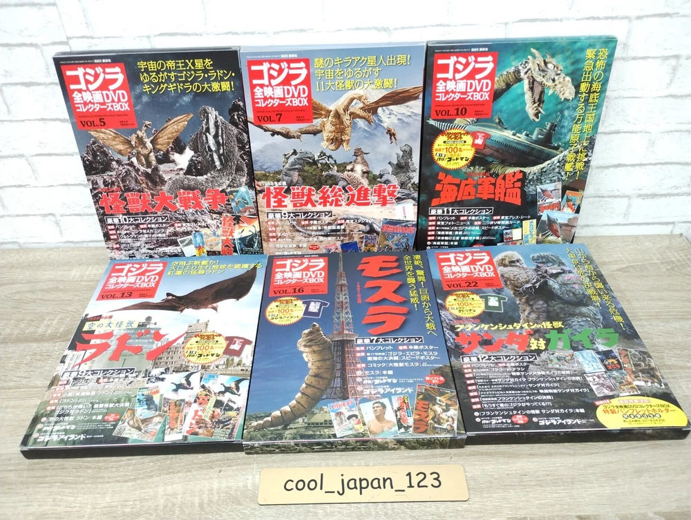 Description Brand New! This is a set of 6 items from the Godzilla All Movie DVD Collector's Box, Vols. 5,7,10,13,16and 22. ● Condition: New ● DVD:Region 2: Japan, Europe, the Middle East, South Africa, Egypt (Can be viewed on PCs in all countries) ● Japanese Voice ※English voice and subtitles are not available. ● 97 minutes ● Language: Japanese ● Product package dimensions: 12inch x 9inch x 1inch 32.1 x 23.2 x 3 cm ●Comes with reprinted posters, brochures, flyers, etc. Payment Please make a payment within 3 days otherwise automatically unpaid case will be opened. But if you would like to cancel after you buy, you can contact us to cancel. Shipping We use FedEx or Japan Post Service. Economy Shipping: 11-23 days (no tracking number) Standard Shipping: 5-10 days (Tracking number available) Expedited shipping: 2-4 days (Tracking number available) +Handing time about 3 business days. *It will be shipped to the address registered with ebay. Return Free Return. We carefully check the condition of all of our items before we list it for sale and also before we dispatch it to you. We promise to work hard on the problem and make it right. Please contact me first for return before you ship it back to me. International Buyers - Please Note: ·Import duties, taxes and charges are not included in the item price or shipping charges. Please understand these charges are the buyers responsibility. ·Please check with your countrys customs office to determine what these additional costs will be prior to bidding/buying. ·These charges are normally collected by the delivering freight (shipping) company when you pick the item up please do not confuse them for additional shipping charges.