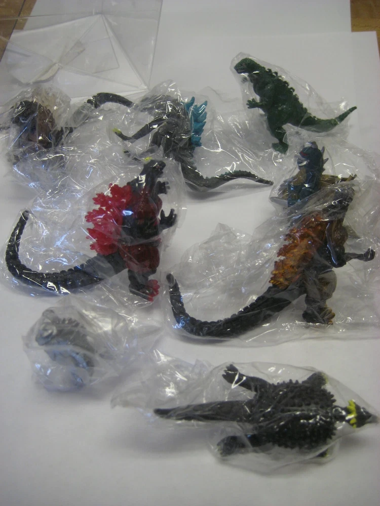 RC COLLECTIBLES Welcome to the Auction! RC Collectibles is a James Spence (JSA) & (CAS) Recommended Dealer! GODZILLA I BELIEVE THESE ARE BANDAI 8 SEALED MINI FIGURES 8 PIECE SET IN BOX THE PIECES RANGE APROXIMATELY 2"-4" FREE SHIPPING! You are bidding on a great original . Over 10,000 positive feed backs so buy with confidence. Payment is due in 5 days. When transaction is completed please leave positive feedback and I will do the same.