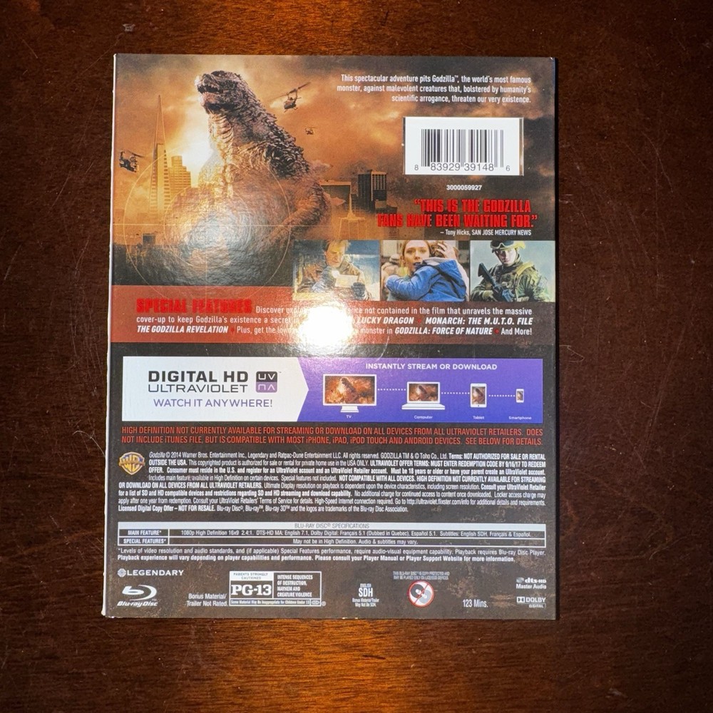 Experience the epic battle between humanity and the mighty beast in this 2-disc set of the 2014 movie "Godzilla" on Blu-ray. Directed by Gareth Edwards and featuring Elizabeth Olsen and Aaron Taylor-Johnson, this standard edition is perfect for fans of science fiction and horror. With a rating of PG-13, this movie is suitable for teens and adults. Enjoy additional scenes and a behind-the-scenes featurette in English, French, or Spanish subtitles. This Blu-ray set is brand new and sealed, making it the perfect addition to any movie collection.
