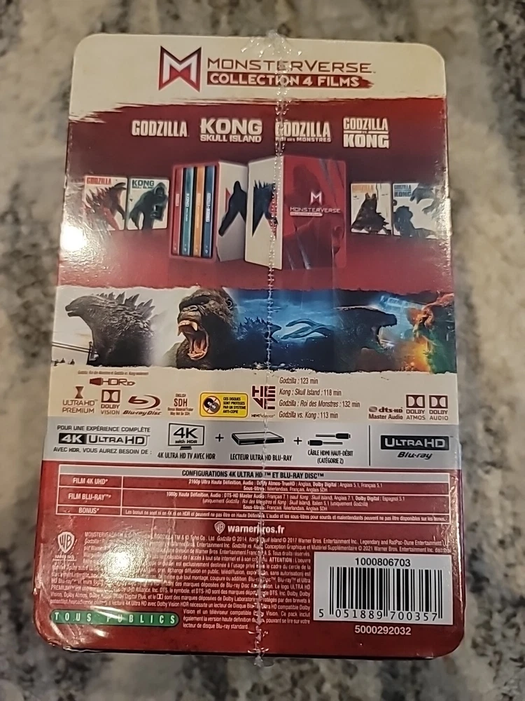 PLEASE NOTE I HAVE A LONGER THAN AVERAGE HANDLING TIME DUE TO SOME UNAVOIDABLE REASONS. KINDLY PLACE ORDER WITH ME ONLY IF YOU ARE OK WITH THE DELIVERY TIMELINES SHOWN BY EBAY. PLEASE DO NOT SEND ME SHIPPING QUERIES UNLESS THE EBAY TIMELINES HAVE EXPIRED. PLEASE check the delivery timelines before placing your order. I have an increased handling time due to personal constraints. Though I will try to ship your order as soon as possible, please do not send shipping/delivery inquiries for at least a week after placing the order. I do understand most eBay sellers ship faster than me, but unfortunately I cannot match them for now. I do however try and provide the best service possible in every other way. PLEASE FACTOR THIS IN WHILE PLACING AN ORDER. Thank you for your patience. This is the 4K UHD Blu-ray Steelbook Collection of the GODZILLA and KING KONG Monsterverse Collection which includes 4 recent movies of this franchise in individual exclusive steelbooks! The movies included are Godzilla, Godzilla King of Monsters, Kong Skull Island, and Godzilla V Kong! This is a European region-free import...all discs will work in US and other players worldwide! Please check all pictures of the actual items... there a re minor dents and indentations on the OUTER METAL BOX housing the steelbooks. There is no visible damage on the steelbooks. Please note most of these sets suffer from this issue, similar to the LOTR/Hobbit sets, but the steelbooks should be in perfect mint condition. PLEASE CHECK THE PICTURES CAREFULLY and purchase only if you are OK with the minor flaws on the outer metal box. I have more than one set and will send out the best possible set from the ones I have remaining. I will pack and ship securely being a fellow collector! STEELBOOK RISKS AND RETURN POLICY 1. Please note that all steelbook purchases carry the inherent risk of some flaws/scratches/dents getting revealed when the shrink wrap is removed. I cannot guarantee the areas of the steelbook which I cannot see. PLEASE DO NOT OPEN THE SHRINK WRAP if you want to return the steelbook. 2. I will examine the steelbook as well as I can before shipping it. I will not ship any item with visible flaws unless mentioned in the listing or will inform you over an email and get your approval before shipping. That is the best I can do. 3. Please note discs can get dislodged from hubs during shipping. I personally do not consider it a flaw, but if you are particular about it and keep your steelbooks sealed, please return it to me sealed and unopened for a full refund. Buyer will need to pay for return shipping. 4. I will accept any domestic US returns for a full refund AS LONG AS THE ITEM CONDITION IS IDENTICAL to as it was when sent to you and the shrink wrap is NOT OPENED. Return shipping is paid by the buyer. Please pack it well to avoid any damage in transit (please use the packaging I sent it in if you still have it). If there is any damage or if the item is not in the condition as sent to you, I will not be able to give a full refund. 5. In case of returns for numbered limited edition sets, I will check the serial number of the returned set against the one shipped out. If the numbers do not match, I will not be able to process a refund. I am sorry but I have suffered in the past when I was returned a damaged set which was not purchased from me. 6. Please note I have an increased handling time due to some personal constraints. I will try to ship items as soon as I can, but it can take up to the handling time indicated. Thank you for your patience. 7. Please note the free shipping included is by MEDIA MAIL. With the current USPS standards, it can easily take up to 4 weeks for delivery. I will pack very securely, so there is no issue using media mail, but please use Priority Shipping if you want the items quickly.