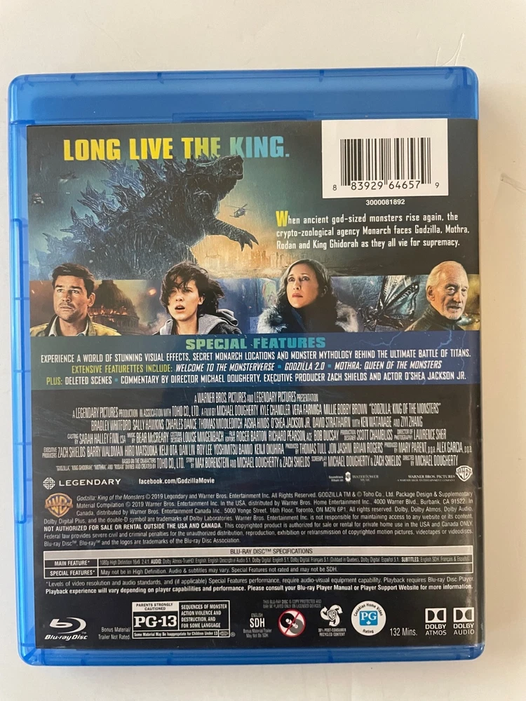 GODZILLA: KING OF THE MONSTERS Blu-Ray Disc + Special Feature [2 Discs] what you see pictured is what you will receive. I don't use stock photos....