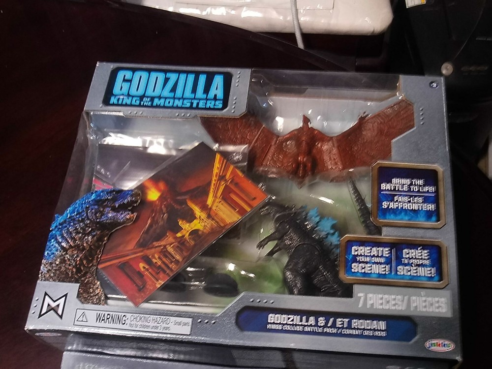 GODZILLA KING OF THE MONSTERS - GODZILLA & ET RODAN HAS 7 PIECES. THESE ARE ALL NEW IN THE BOX. THEY ARE COMING FROM THE STORE SHELF AND THE BOXES MAY SHOW SHELFWEAR - BUT THE FIGURES ARE GREAT! FOR AGES 4 & UP.I WILL SHIP IN THE USA - FIRST CLASS MAIL IN A PADDED ENVELOPE. IF YOU WANT IT SHIPPED IN A BOX, PLEASE CHOOSE PRIORITY MAIL. I SHIP WOLRDWIDE. I COMBINE SHIPPING. PLEASE SEE MY OTHER ITEMS. THANKS