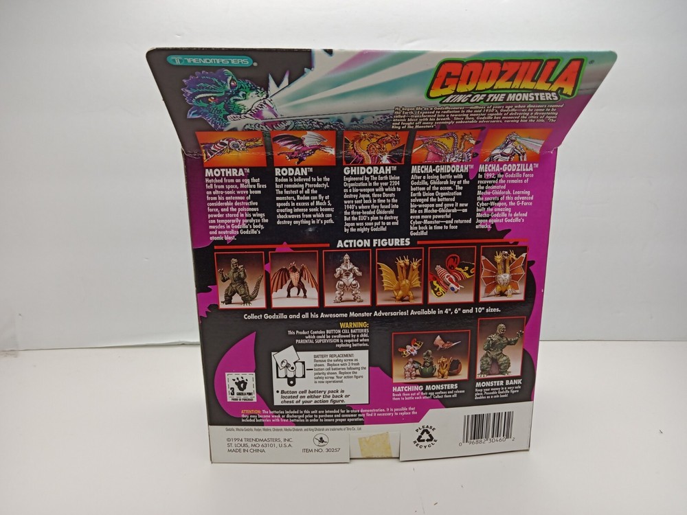 See photos for exact condition. The items in the photos are the actual items you will receive. You are looking at a vintage Godzilla KoM Mothra figure 1994 TOHO co. Sealed in box Feel free to ask questions. I do my best to get all items in the mail asap, but please be patient if it takes me a few days to ship your item out. Thanks for looking and be sure to check out my other items. We are a real Brick and Mortar Store located in St. Louis, Mo. We are always buying toys. Retro TV Toys