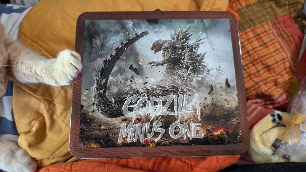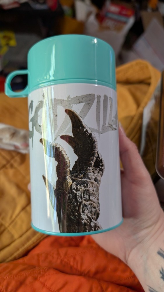 Godzilla Minus One Lunch box. Includes thermos. Damage to bottom, slight dent (see photos) Home with cats Smoke free home Any specific questions please feel free to ask...