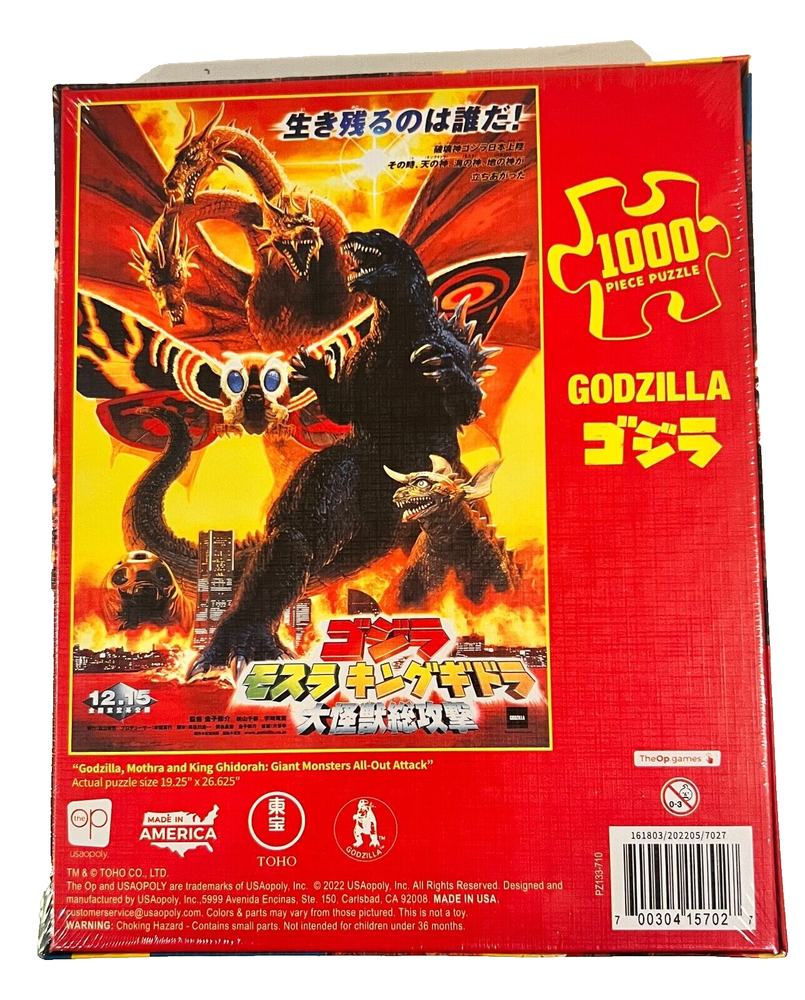 GODZILLA MOTHRA KING GHIDORAH GIANT MONSTERS ALL OUT ATTACK 1000 PIECE PUZZLE FROM OP MINT IN SEALED BOX ALL TOYS WILL BE PACKED WITH EXTREME CARE TO MAKE SURE YOUR ORDER ARRIVES SAFELY. WE WANT YOUR CUSTOMER EXPERIENCE TO BE AN OUTSTANDING ONE AND YOUR FEEDBACK TO REFLECT THAT. ANY PROBLEMS? CONTACT US. WE ARE ONLY HUMAN AND ERRORS OCCUR BUT WE HAVE A FANTASTIC TRACK RECORD OF FIXING EVEN THE SMALLEST PROBLEMS TO MAKE SURE THAT YOU'RE 100% SATISFIED WITH YOUR PURCHASE. GRADING OF PRODUCT IS ACCURATE AND CONSERVATIVE. WHEN YOUR ORDER SHIPS A TRACKING NUMBER WILL BE UPDATED INTO YOUR AUCTION. ITEMS WILL BE SHIPPED OUT UNLESS YOU PREFER TO PICK UP AT OUR RETAIL STORE TO SAVE ON SHIPPING FEES. WHEN IN NEW JERSEY STOP BY OUR RETAIL LOCATION AT 579 RT. 22 WEST, NORTH PLAINFIELD. WE HAVE BEEN AROUND SINCE 1990 AND HAVE A UNIQUE, WELL STOCKED COMIC SHOP. WE APPRECIATE YOUR PATRONAGE , THE JC COMICS STAFF BUYING, BUYING, BUYING, BUYING !!! WE ARE BUYING COMIC AND TOY COLLECTIONS OF ANY AND ALL SIZES (FROM 1930S TO PRESENT) PLEASE CONTACT ME VIA EBAY MESSENGER AND I WILL GET BACK TO YOU PROMPTLY