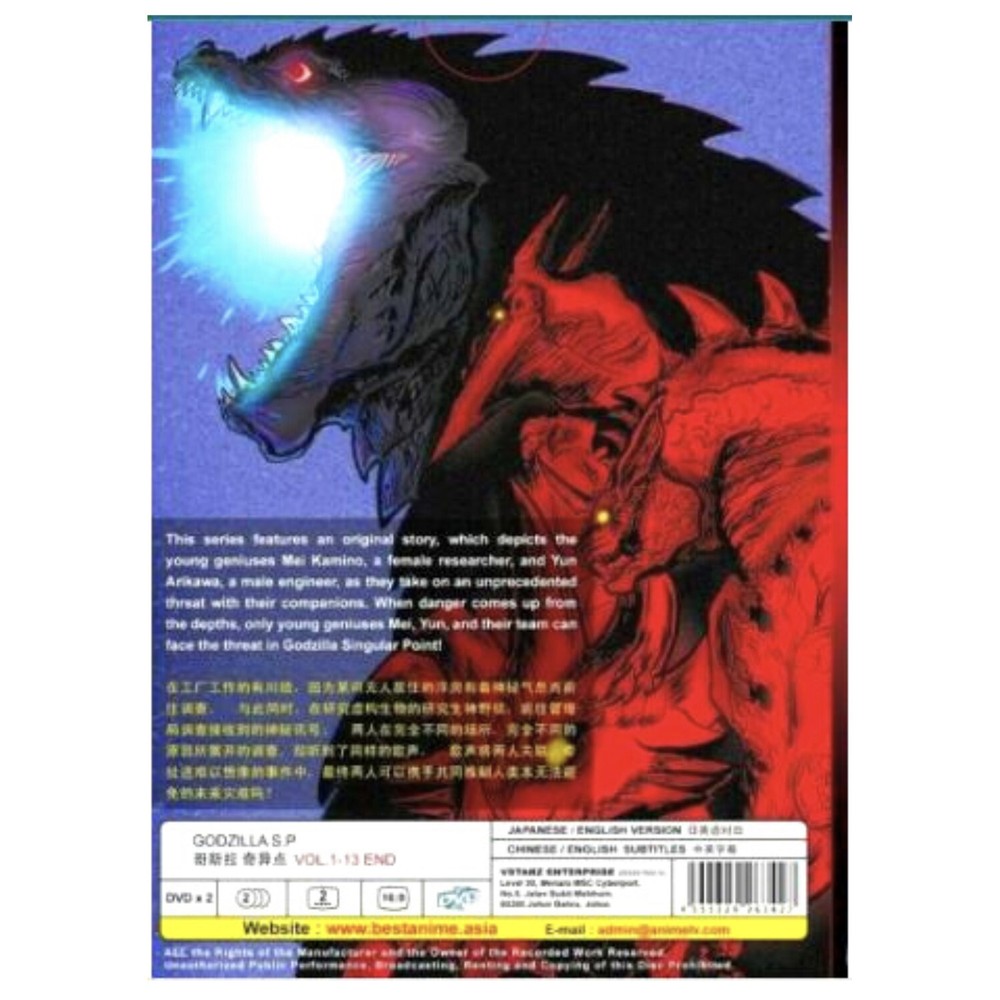 Godzilla S.P Vol. 1-13 End (English Dubbed) Synopsis; This series features an original story, which depicts the young geniuses Mei Kamino, a female researcher, and Yun Arikawa, a male engineer, as they take on an unprecedented threat with their companions. When danger comes up from the depths, only young geniuses Mei, Yun, and their team can face the threat in Godzilla Singular Point! DESCRIPTION Godzilla S.P (Singular Point) ゴジラ S.P <シンギュラポイント> Complete TV Series Volume 1-13 End *NEW! English Audio Dubbed Version Free International Shipping Optional: English Subtitle Condition: Authentic Brand NEW, Original Factory Sealed. Episode: Vol. 1-13 End No. of Discs: DVD x 2pcs Region Code: ALL Region, Region FREE "0" (Able to play on DVD Players throughout the World) Audio Language: English / Japanese Subtitles: English / Chinese Format : DVD / NTSC & All Region Code (16:9) Publisher : Malaysia Original Hologram Sticker +=+=+=+=+=+ PAYMENT POLICY: Currently, we accept payment through eBay-managed payment. SHIPPING POLICY: We ship using Standard Shipping from USA. Handling time is 3 days. Estimated Delivery time within 5 days. Item location is at Walnut, California. Your goods will be shipped with a valid tracking number. All products are packed, and layered with bubble wrap to reduce damages during shipment delivery. RETURN POLICY: Our policy allign with ebays professional law standards. Buyers covered by the ebay Money Back Guarantee are eligible for refunds in this situations: damaged item, item not matching the description or wrongitem. To initiate a refund, provide evidence of shipping damage and save the packaging. If you no longer want the item, we accept returns as long as it's in the same condition as when shipped. Refunds will be issued minus the original shipping cost. Return the item within the specified period, umopened with no missing parts or damage to the packaging. Once the item is delivered and in satisfactory condition, a refund will be issued within 2 days. Unreasonable circumstance or failure to meet conditions may result in a non-accepted return. FEEDBACK: We highly value and appreciate your feedback. Your experience is important to us, and if there are any areas where we can improve, please let us know before leaving any feedback. Our customer are our top priority, and we take your feedback seriously. We are committed to working together to find resolution that satisfy you. Please contact us through ebay messaging, including your contact information and order number. Thank you for shopping with us. APPRECIATION: Thank you for visiting our store, and appreciate you buying. Please do visit us again for other products!