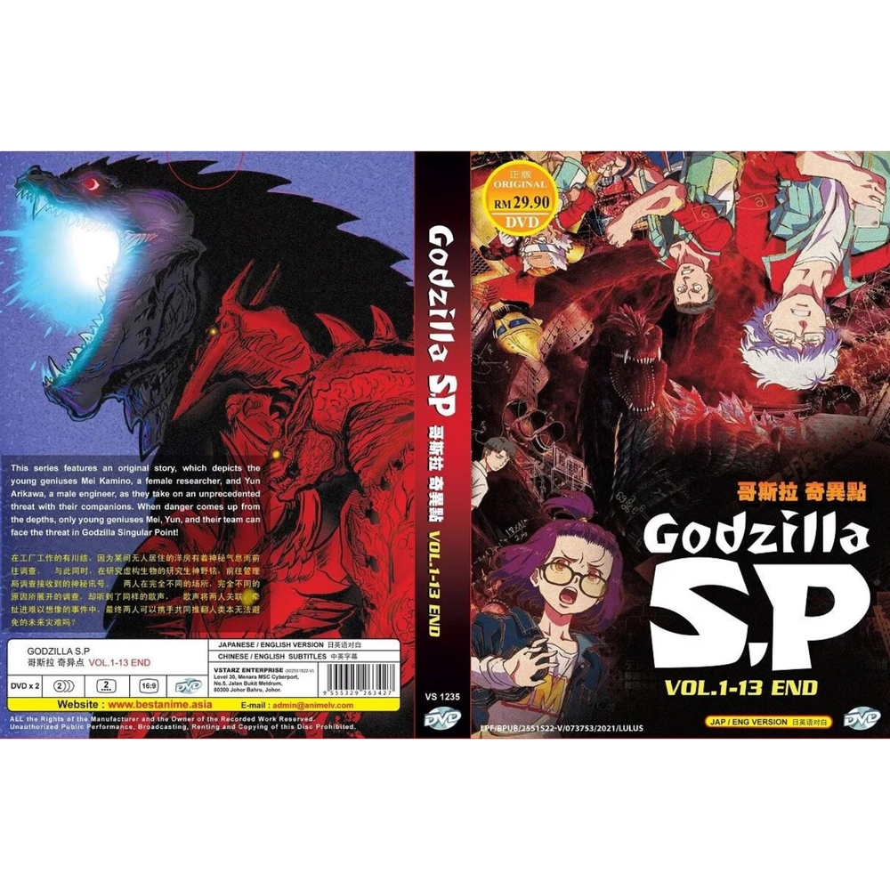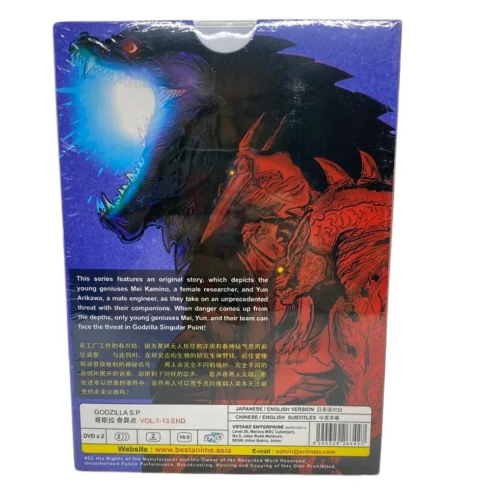 This Godzilla S.P DVD set is a must-have for any anime or kaiju fan! The complete Vol. 1-13 collection delivers epic action with crisp visuals and the option for English or Japanese audio. The region-free discs make it easy to enjoy worldwide, and the tall case keeps everything neatly organized. Perfect for binge-watching—highly recommended!