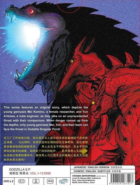 Synopsis This series features an original story, which depicts the young geniuses Mei Kamino, a female researcher, and Yun Arikawa, a male engineer, as they take on an unprecedented threat with their companions. When danger comes up from the depths, only young geniuses Mei, Yun, and their team can face the threat in Godzilla Singular Point! DVD Details Disc Quantity : 2 Discs Episodes : TV Series, 1-13 Episodes Version@Language : Japanese / English Subtitles : English / Chinese Format & Region : DVD9 / NTSC & All region code ( 16: 9 ) Duration : Approx. 325 Minutes Genres : Action, Sci-Fi, Mystery, Mecha Shipping & Handling Details Shipment open to Worldwide. Free shipment to all COUNTRY!! The product is well packed using bubble padded envelope/boxes to protect product from damages The product will be shipped using Express Mail with Traceable Postage . Tracking code will be provided to customers. Shipment notification will be given to the customer once the product is ready to ship. For Worldwide International Shipment , please allow 5 - 14 days for your item to arrive. Replacement Policy We are 100% committed to ensuring our customers are satisfied with their purchase. Any product found to be faulty, We will issue new replacement discs. Products are FULLY INSURED (Any product lost in shipment will be replace with a new set or fully refund) Contact us for more information. Customer’s Notes Please contact us before leaving any bad FEEDBACKS or DISPUTES. We provide after sales service