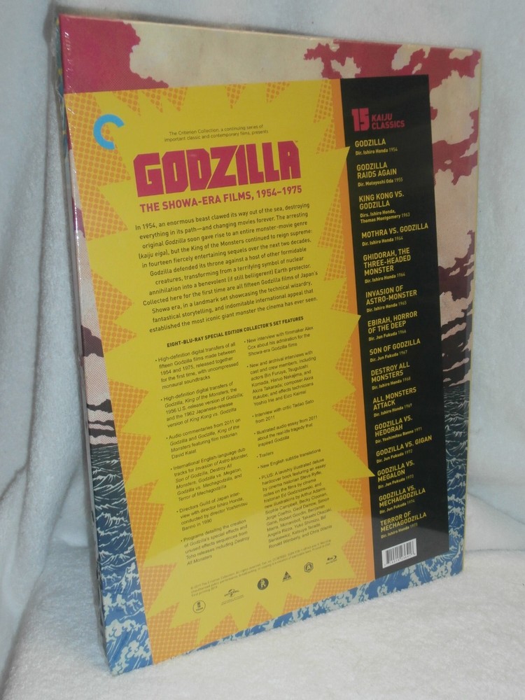 PLEASE READ BELOW BEFORE BIDDING AND ASKING ANY QUESTIONS ITEM DESCRIPTION This 8-Disc BLURAY is BRAND NEW!! FACTORY SEALED!! NEVER OPENED!! It includes all the original cases, covers, inserts and, of course, the disc(s) itself. GODZILLA: THE SHOWA-ERA FILMS, 1954-1975 (The Criterion Collection) [Blu-ray] [2019] with Takashi Shimura (actor), Akira Takarada (actor) Blu-ray, Subtitled Summary In 1954, an enormous beast clawed its way out of the sea, destroying everything in its path—and changing movies forever. The arresting original Godzilla soon gave rise to an entire monster-movie genre (kaiju eiga), but the King of the Monsters continued to reign supreme: in fourteen fiercely entertaining sequels over the next two decades, Godzilla defended its throne against a host of other formidable creatures, transforming from a terrifying symbol of nuclear annihilation into a benevolent (if still belligerent) Earth protector. Collected here for the first time are all fifteen Godzilla films of Japan’s Showa era, in a landmark set showcasing the technical wizardry, fantastical storytelling, and indomitable international appeal that established the most iconic giant monster the cinema has ever seen. EIGHT-BLU-RAY SPECIAL EDITION COLLECTOR’S SET FEATURES • High-definition digital transfers of all fifteen Godzilla films made between 1954 and 1975, released together for the first time, with uncompressed monaural soundtracks • High-definition digital transfers of Godzilla, King of the Monsters, the 1956 U.S.-release version of Godzilla; and the 1962 Japanese-release version of King Kong vs. Godzilla • Audio commentaries from 2011 on Godzilla and Godzilla, King of the Monsters featuring film historian David Kalat • International English-language dub tracks for Invasion of Astro-Monster, Son of Godzilla, Destroy All Monsters, Godzilla vs. Megalon, Godzilla vs. Mechagodzilla, and Terror of Mechagodzilla • Directors Guild of Japan interview with director Ishiro Honda, conducted by director Yoshimitsu Banno in 1990 • Programs detailing the creation of Godzilla’s special effects and unused effects sequences from Toho releases including Destroy All Monsters • New interview with filmmaker Alex Cox about his admiration for the Showa-era Godzilla films • New and archival interviews with cast and crew members, including actors Bin Furuya, Tsugutoshi Komada, Haruo Nakajima, and Akira Takarada; composer Akira Ifukube; and effects technicians Yoshio Irie and Eizo Kaimai • Interview with critic Tadao Sato from 2011 • Illustrated audio essay from 2011 about the real-life tragedy that inspired Godzilla • New English subtitle translations • Trailers • PLUS: A lavishly illustrated deluxe hardcover book featuring an essay by cinema historian Steve Ryfle, notes on the films by cinema historian Ed Godziszewski, and new illustrations by Arthur Adams, Sophie Campbell, Becky Cloonan, Jorge Coelho, Geof Darrow, Simon Gane, Robert Goodin, Benjamin Marra, Monarobot, Takashi Okazaki, Angela Rizza, Yuko Shimizu, Bill Sienkiewicz, Katsuya Terada, Ronald Wimberly, and Chris Wisnia Godzilla: The Showa-Era Films, 1954-1975 (Criterion Collection) In 1954, an enormous beast clawed its way out of the sea, destroying everything in its path—and changing movies forever. The arresting original Godzilla soon gave rise to an entire monster-movie genre (kaiju eiga), but the King of the Monsters continued to reign supreme: in fourteen fiercely entertaining sequels over the next two decades, Godzilla defended its throne against a host of other formidable creatures, transforming from a terrifying symbol of nuclear annihilation into a benevolent (if still belligerent) Earth protector. Collected here for the first time are all fifteen Godzilla films of Japan’s Showa era, in a landmark set showcasing the technical wizardry, fantastical storytelling, and indomitable international appeal that established the most iconic giant monster the cinema has ever seen. Eight-disc set includes: Godzilla (1954) Atomic testing in the Pacific awakens a gigantic reptilian creature dubbed Godzilla off the coast of Japan and sends the monstrous menace on a rampage across Tokyo and its environs. Director Ishiro Honda's "kaiju" classic spawned innumerable sequels; Akihiko Hirata, Takashi Shimura, Momoko Kochi, and Haru Nakajima star. Includes the original Japanese release "Gojira" and the 1956 re-dubbed American version "Godzilla, King of the Monsters," with Raymond Burr. 96 min. In Japanese with English subtitles/Dubbed in English. Godzilla Raids Again (1955) While flying over a remote island, two pilots spot Godzilla (which may or may not be the same Big G supposedly destroyed in the first film) fighting with another creature, the spine-covered Anguirus. When the beasts' battle brings them to mainland Japan, officials must find a way to stop their destructive "monster mash." Minoru Chiaki, Hiroshi Koizumi star. 82 min. In Japanese with English subtitles King Kong vs. Godzilla (1962) It's the showdown monster fans dreamed of, as the great ape is found alive and well (!) in the South Seas and brought to Japan, where he has an all-out slugfest atop Mt. Fuji with the mean, green lizard king. Michael Keith, James Yagi, and Mie Hama co-star alongside the two biggest titans in movie history. 91 min. In Japanese with English subtitles. Mothra vs. Godzilla (1964) A giant egg washes up on a Japanese beach and is taken to a Tokyo amusement park. But when the egg's mother--the winged wonder known as Mothra--shows up to reclaim it, and a revived Godzilla is on the rampage in Tokyo, the stage is set for a monster-sized showdown. Akira Takarada, Yuriko Hoshi, and the Ito Sisters star. 89 min. In Japanese with English subtitles. Ghidorah, The Three-Headed Monster (1964) Mothra, Rodan, and the king of them all, Godzilla, join forces to protect the Earth from the alien menace of King Ghidorah, a thrice-domed, golden-scaled, bat-winged beastie with desi