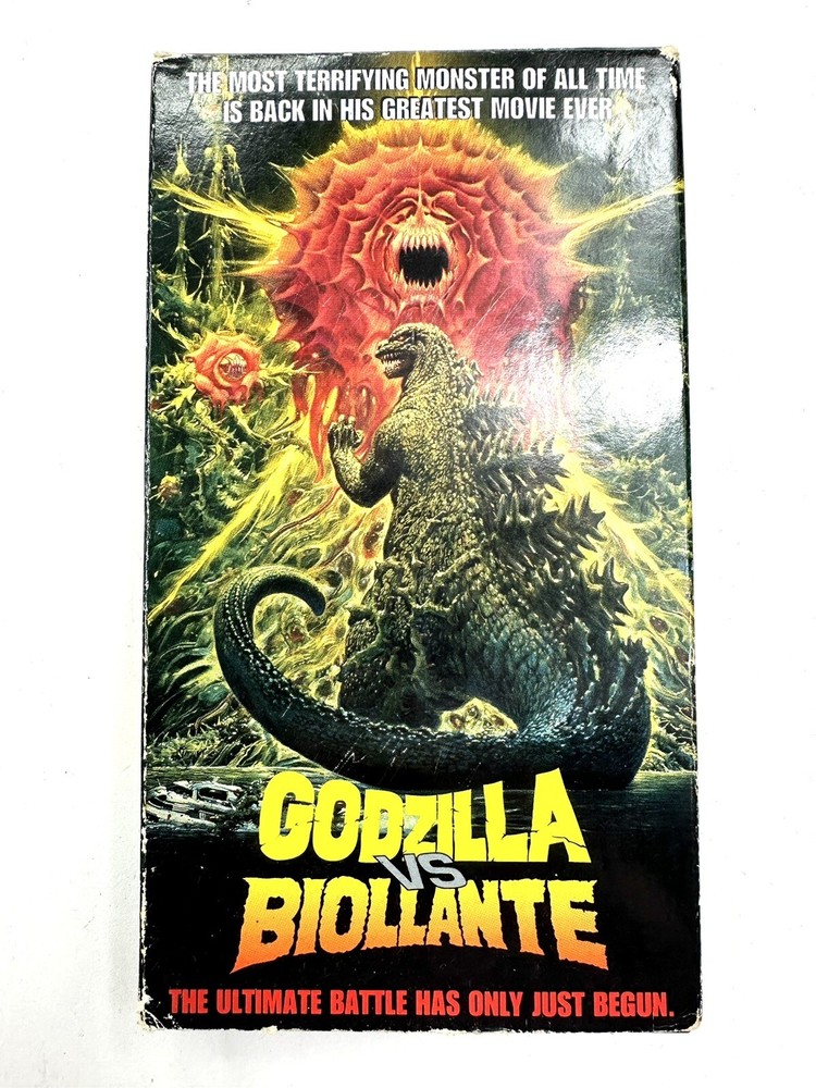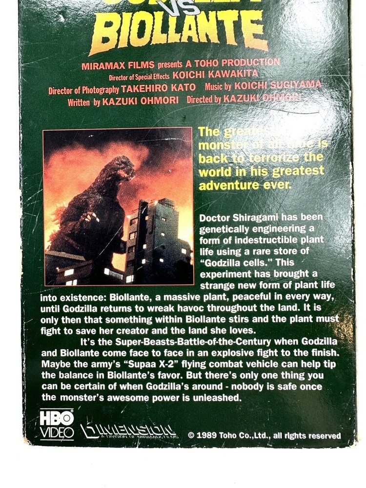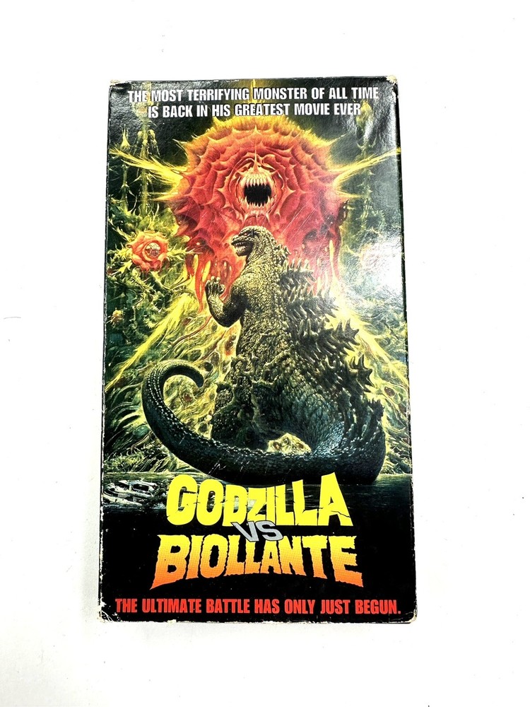 This VHS tape features the 1989 release of Godzilla Vs. Biollante, a thrilling monster horror movie directed by Kazuki Ohmori. The tape is in the NTSC signal standard and has not been formerly rented. It is a great addition to any collection for fans of the sci-fi and fantasy genre. The movie stars Kazuki Ohmori as an actor and has a rating of NR. The release year is 1989 and the language is English. This VHS tape is a must-have for horror movie enthusiasts and fans of the iconic Godzilla franchise.