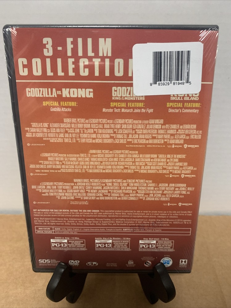 For movie enthusiasts who love action, adventure, and sci-fi & fantasy, this 3-disc DVD set is a must-have. It includes Godzilla vs. Kong, Godzilla: King of the Monsters, and Kong: Skull Island, all in widescreen and with subtitles and captions available. The films feature renowned actors such as Kyle Chandler, Millie Bobby Brown, Samuel L. Jackson, John C. Reilly, and Brie Larson, and are directed by Adam Wingard, Michael Dougherty, and Jordan Vogt-Roberts, respectively. The collection comes in a tall/DVD case and has a total run time of 113 mins, 132 mins, and 118 mins. It also has an aspect ratio of 16:9 and a region code of DVD: 1 (US, Canada...). This cult cinematic movement is a part of the Godzilla and King Kong franchise by Warner Bros, and is rated PG-13. Purchase this standard edition box set today and witness the epic battle between two of the most iconic creatures/monsters in the world! Brand new factory sealed never opened! No scratches or fingerprints on the discs! Original case and artwork in perfect condition show normal wear. Visit my store and check out my Buy 3 get 1 free sales on all dvds, blu rays, cds and video games! Must add 4 to your cart to get the deal! and also Check out my other items and follow me for I post new items daily including cds, dvds and blu rays, games, action figures and more! All dvds, cds, blu rays and games are authentic. We do not sell bootlegs! If multiple dvds, blu rays and cds are bought they will all be shipped together in a nicely packed box to avoid damage. All large box sets will be shipped in a box. All of my items come from a smoke and pet free home. Make me an offer on multiple items and I will gladly combine shipping! Tracking is provided for all orders!
