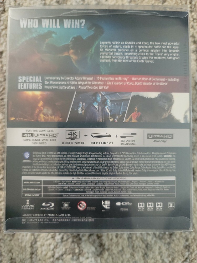 PLEASE NOTE I HAVE A LONGER THAN AVERAGE HANDLING TIME DUE TO SOME UNAVOIDABLE REASONS. KINDLY PLACE ORDER WITH ME ONLY IF YOU ARE OK WITH THE DELIVERY TIMELINES SHOWN BY EBAY. PLEASE DO NOT SEND ME SHIPPING QUERIES UNLESS THE EBAY TIMELINES HAVE EXPIRED. PLEASE check the delivery timelines before placing your order. I have a handling time of up to 10 BUSINESS DAYS due to personal constraints. Though I will try to ship your order as soon as possible, please do not send shipping/delivery inquiries for at least 7 business days after placing the order. I do understand most eBay sellers ship faster than me, but unfortunately I cannot match them for now. I do however try and provide the best service possible in every other way. PLEASE FACTOR THIS IN WHILE PLACING AN ORDER. Thank you for your patience. This is the rare sold out MANTA LAB 4K Blu-ray 1-Click Box Set of GODZILLA VS KONG!! A true collector's item! This includes THREE sets, Full Slip, Single Lenticular and Double Lenticular editions!! Each set contains the steelbook and additional items. The steelbook is world exclusive. The box set has NO signs of any wear or damage or dents. I will pack securely and ship with care. RETURN POLICY: I will accept any returns for a full refund AS LONG AS THE ITEM CONDITION IS IDENTICAL to as it was when sent to you. Return shipping is paid by the buyer. The item must be sealed and unopened, with no damage whatsoever to the outside packaging as well. If you want to return with the time period allowed, please let me know and please DO NOT open the item. Pack it well to avoid any damage in transit (please use the packaging I sent it in if you still have it). If there is any damage or if the item is not in the condition as sent to you, I will not be able to give a full refund. Please check the delivery timelines before placing your order. I have an increased handling time due to personal constraints. Though I will try to ship your order as soon as possible, please do not send shipping/delivery inquiries a couple of days after placing the order. I do understand most eBay sellers ship faster than me, but unfortunately I cannot match them for now. I do however try and provide the best service possible in every other way. PLEASE FACTOR THIS IN WHILE PLACING AN ORDER. Thank you for your patience. STEELBOOK RISKS AND RETURN POLICY 1. Please note that all steelbook purchases carry the inherent risk of some flaws/scratches/dents getting revealed when the shrink wrap is removed. I cannot guarantee the areas of the steelbook which I cannot see. PLEASE DO NOT OPEN THE SHRINK WRAP if you want to return the steelbook. 2. I will examine the steelbook as well as I can before shipping it. I will not ship any item with visible flaws unless mentioned in the listing or will inform you over an email and get your approval before shipping. That is the best I can do. 3. Please note discs can get dislodged from hubs during shipping. I personally do not consider it a flaw, but if you are particular about it and keep your steelbooks sealed, please return it to me sealed and unopened for a full refund. Buyer will need to pay for return shipping. 4. I will accept any domestic US returns for a full refund AS LONG AS THE ITEM CONDITION IS IDENTICAL to as it was when sent to you and the shrink wrap is NOT OPENED. Return shipping is paid by the buyer. Please pack it well to avoid any damage in transit (please use the packaging I sent it in if you still have it). If there is any damage or if the item is not in the condition as sent to you, I will not be able to give a full refund. 5. In case of returns for numbered limited edition sets, I will check the serial number of the returned set against the one shipped out. If the numbers do not match, I will not be able to process a refund. I am sorry but I have suffered in the past when I was returned a damaged set which was not purchased from me. 6. Please note I have an increased handling time due to some personal constraints. I will try to ship items as soon as I can, but it can take up to the handling time indicated. Thank you for your patience. 7. Please note the free shipping included is by MEDIA MAIL. With the current USPS standards, it can easily take up to 4 weeks for delivery. I will pack very securely, so there is no issue using media mail, but please use Priority Shipping if you want the items quickly.