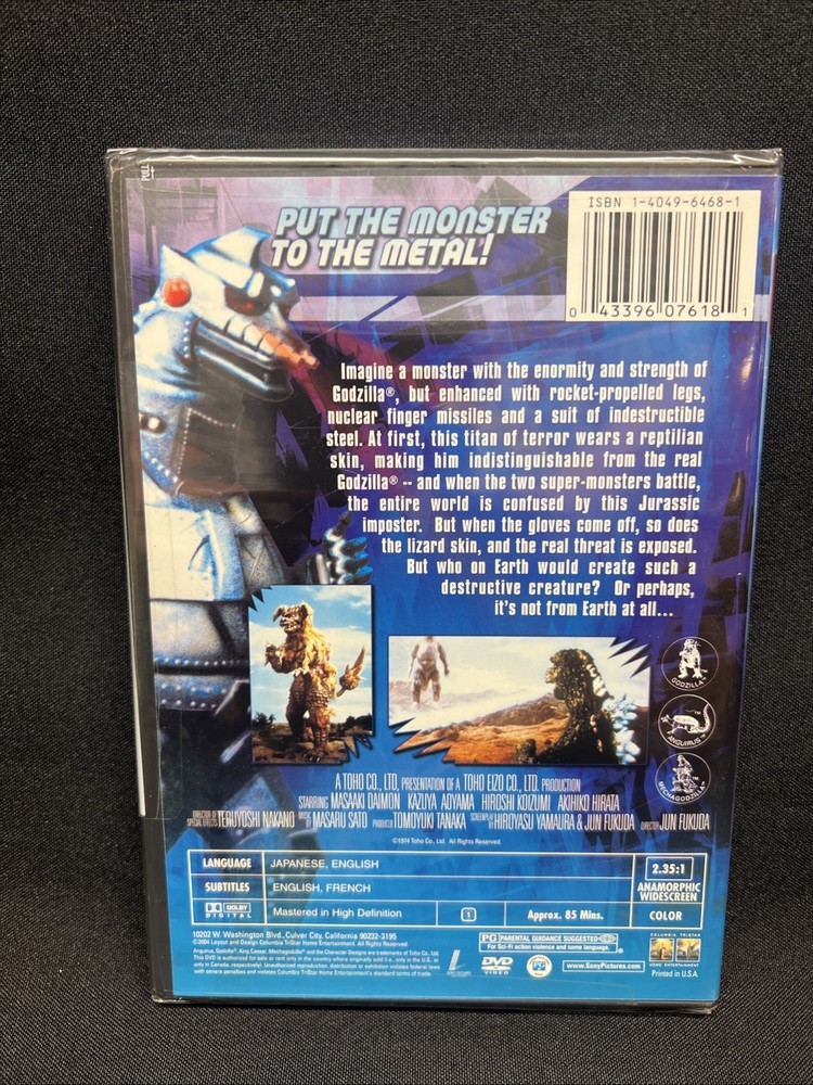 The product is a DVD celebrating the 50th anniversary of the classic movie "Godzilla Vs Mechagodzilla." This US release is authentic and new, sealed in its original DVD case. The DVD features the iconic monsters in a thrilling sci-fi and fantasy setting, with English subtitles available. Produced by Columbia Tristar, this Anniversary Edition is a must-have for fans of creature and monster films, offering the beloved tale in NTSC video format for an enhanced viewing experience.