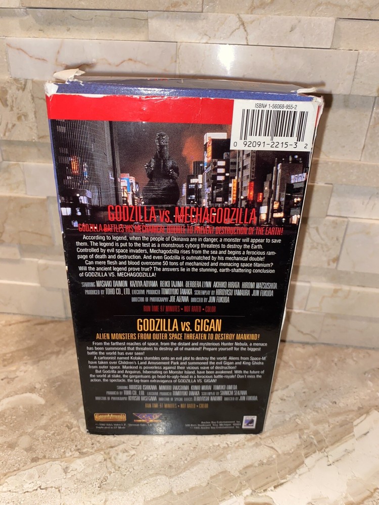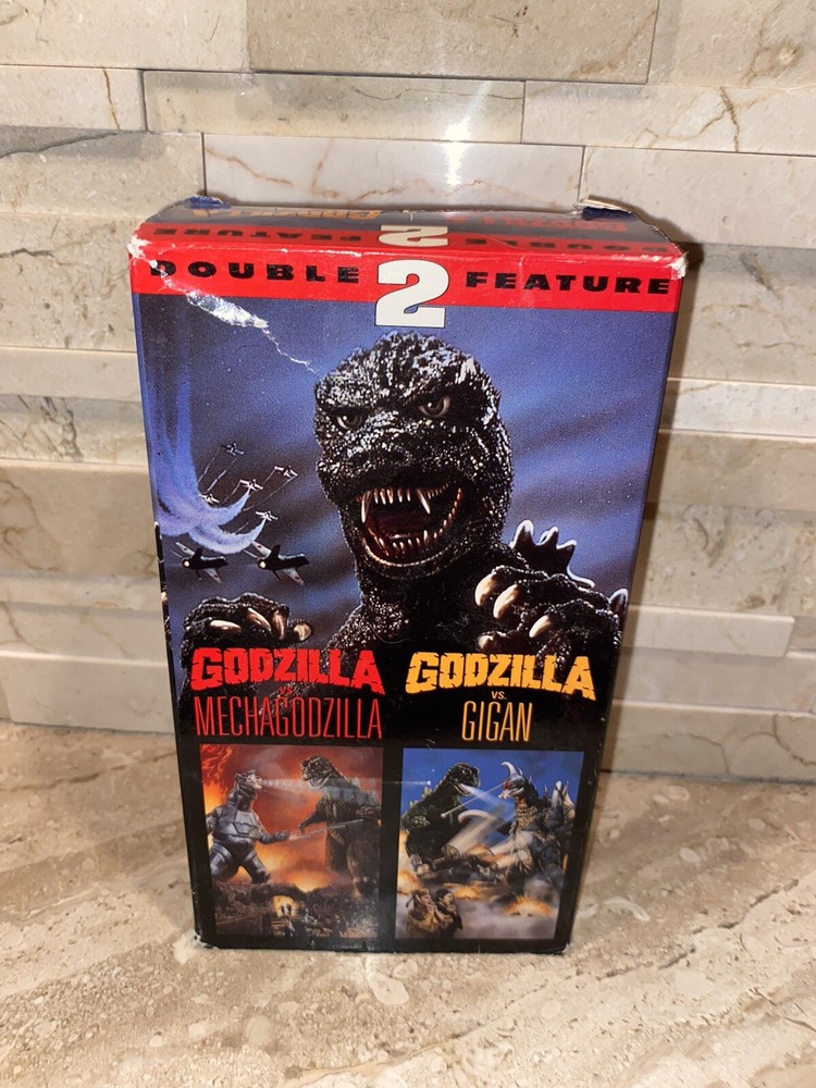 GODZILLA VS. MECHAGODZILLA AND GODZILLA VS. GIGAN DOUBLE FEATURE VHS TAPES. THE TAPES ARE IN GOOD CONDITION, THE BOX IS TORN....