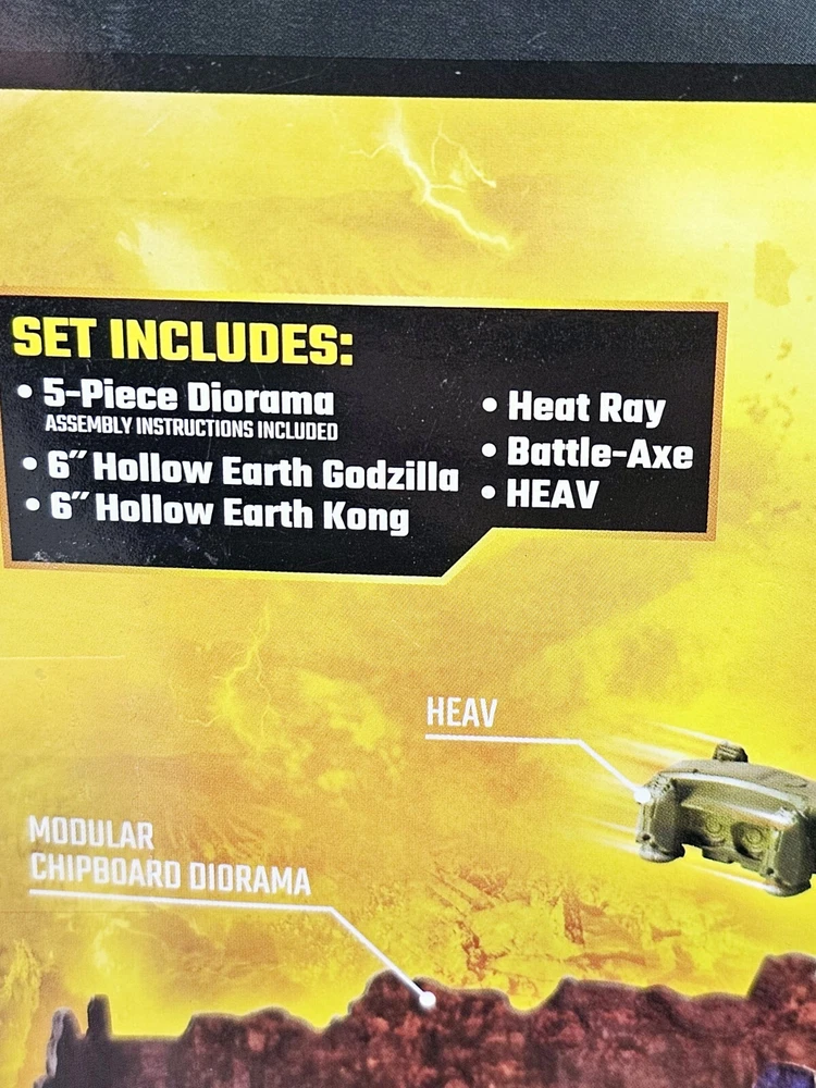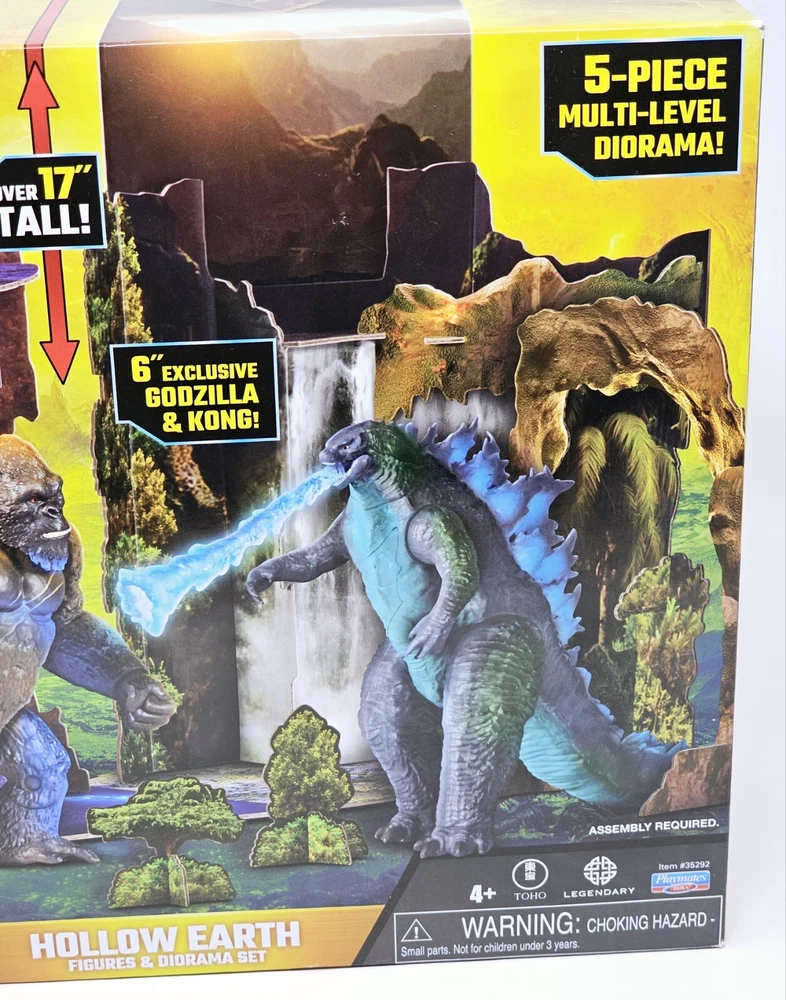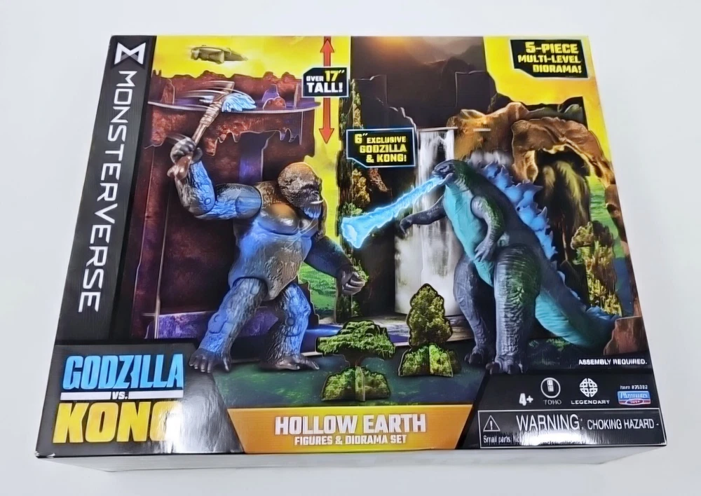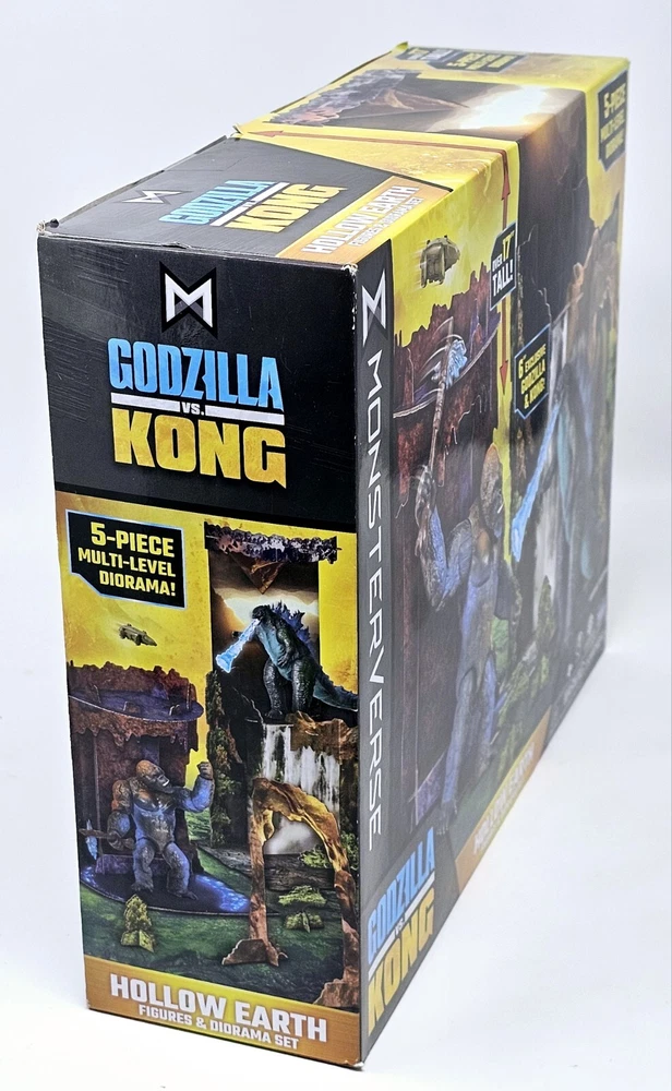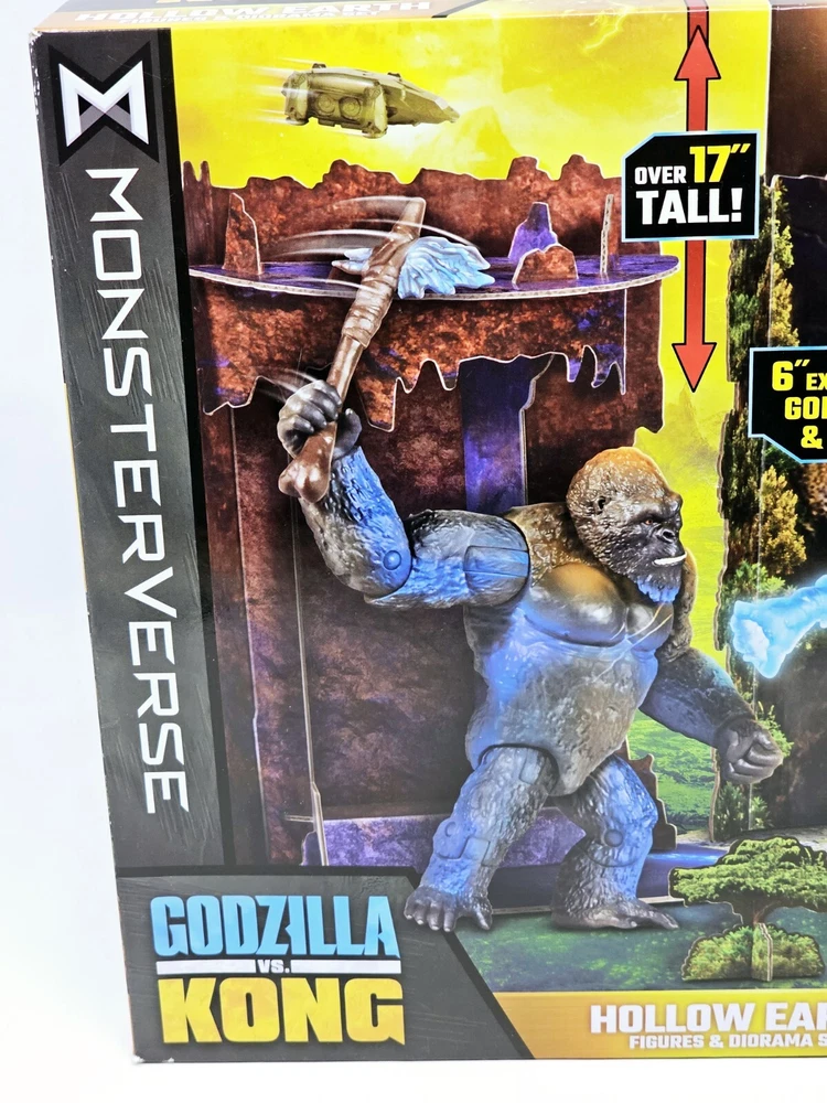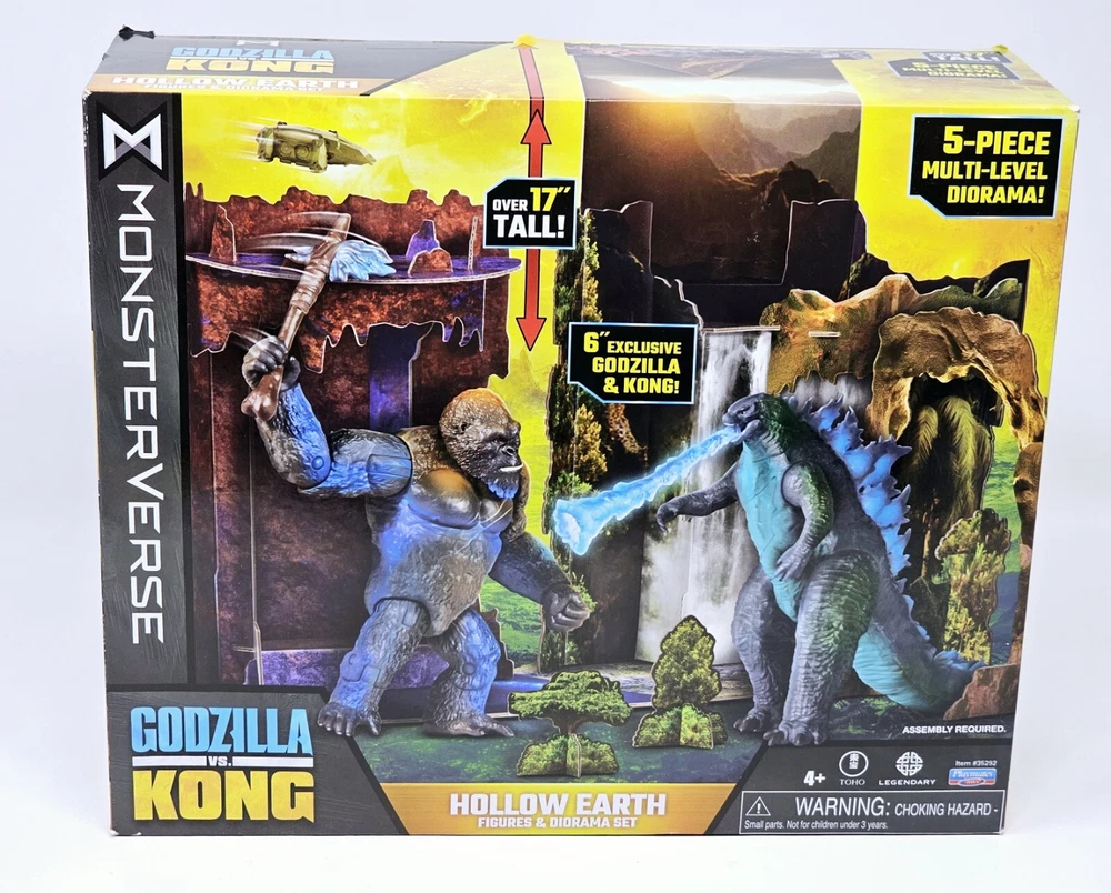 The "GODZILLA Vs. KONG Hollow Earth 6" Figures & 5-Piece Diorama MonsterVerse Sealed" product features a 6-inch tall action figure of Godzilla from the Godzilla vs. Kong movie, part of the MonsterVerse franchise. The action figure is designed by Playmates Toys and comes in a boxed packaging. Additionally, the set includes a 5-piece diorama themed around the Hollow Earth, providing a detailed and immersive display for fans of the Godzilla franchise. This collection is a must-have for collectors and fans of action figures, comics, and the Godzilla series.