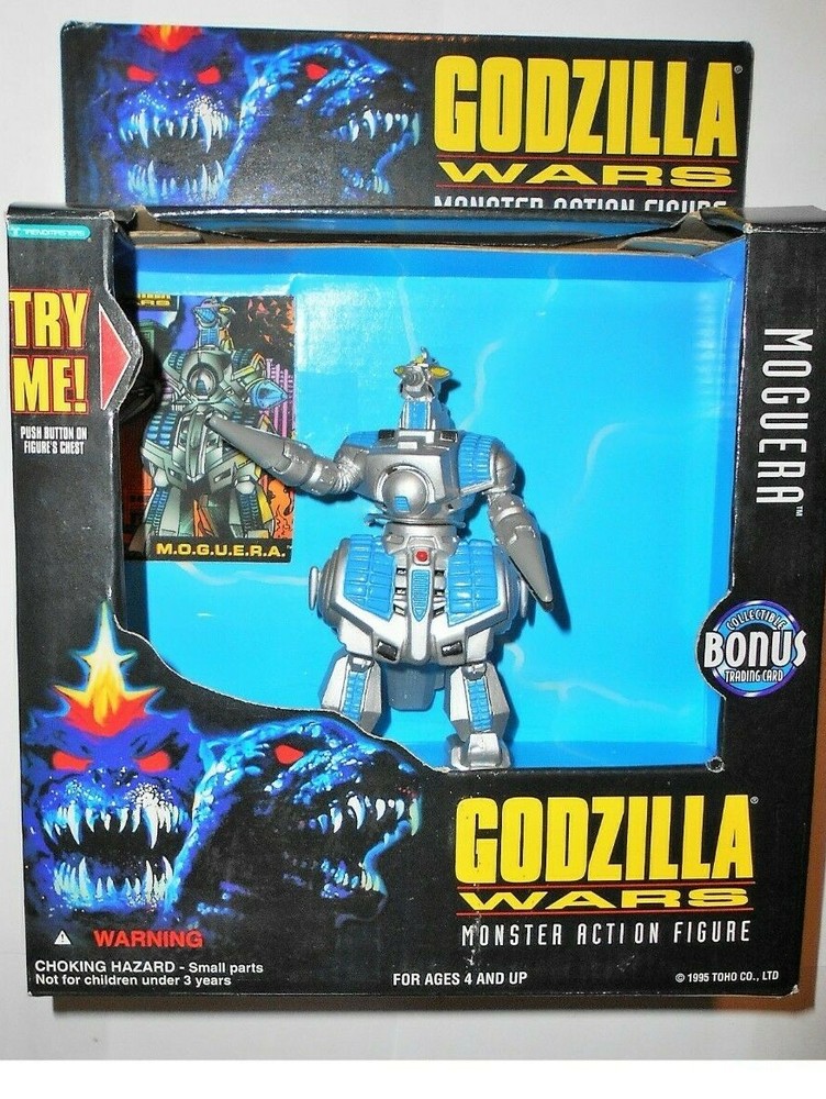 All items sold by ACTIONFIGURESandCOMICS are 100% Guaranteed and returns are accepted for any reason. Trendmasters GODZILLA WARS 1995 5 inch electronic MOGUERA (in the 'Godzilla Wars' box*) *This is the low production 'Godzilla Wars' series. Trendmasters released all of the previous figures from 'Godzilla King of Monsters' into the new package design, however they were made in far fewer numbers as the series was cancelled not long after. NEW - still in the original package Condition : figure is excellent, box is also in great condition. minor shelf wear. Note: The batteries will have to be replaced as they have expired. Figure Size : 5 inch electronic series box size: 10.5 inch x 8 inch x 4 inch CLICK HERE for several other figures and SAVE on Shipping Costs! Combined shipping costs for the USA: 14.95 Priority mail for as many figures as you purchase. Shipping will only be charged on one item, the item with the higher cost, and all other figures will ship in the same package for free shipping costs to All other destinations 34.95 airmail
