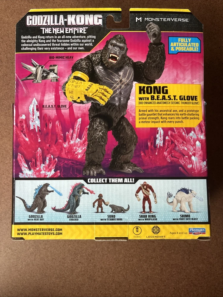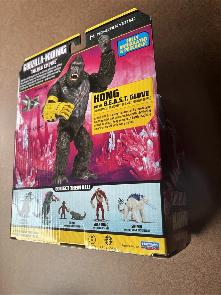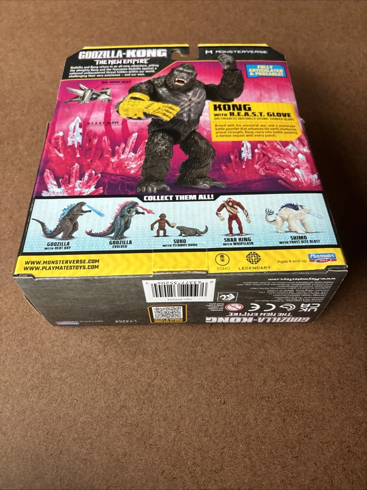 Embark on an epic adventure with the GODZILLA x KONG The New Empire KONG figure, a must-have for fans and collectors alike. This 6-inch action figure, crafted by Playmates Toys, captures the essence of King Kong from the hit movie "Godzilla vs. Kong." The figure is a vibrant multicolor representation, mirroring the iconic character's appearance with striking accuracy. Included with the figure are a pair of Beast Gloves, enhancing Kong's formidable presence. The set is made from durable plastic, ensuring that this King Kong can withstand the rigors of battle and display. Perfect for collectors looking to expand their Monsterverse collection or for anyone who appreciates the art of movie-themed action figures.