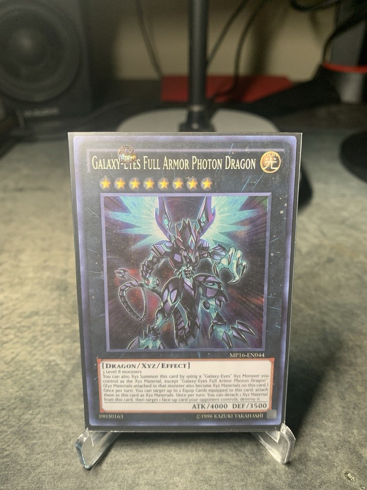Unleash the power of the Galaxy-Eyes Full Armor Photon Dragon in your next duel with this prismatic collector's rare card. With its stunning holographic design, this card is a must-have for any Yu-Gi-Oh! TCG collection. The Galaxy-Eyes Full Armor Photon Dragon is a must-have for any fan of the series, featuring stunning artwork and powerful abilities. This card is perfect for collectors and players alike, manufactured by Konami and ready to make an impact in your next game.