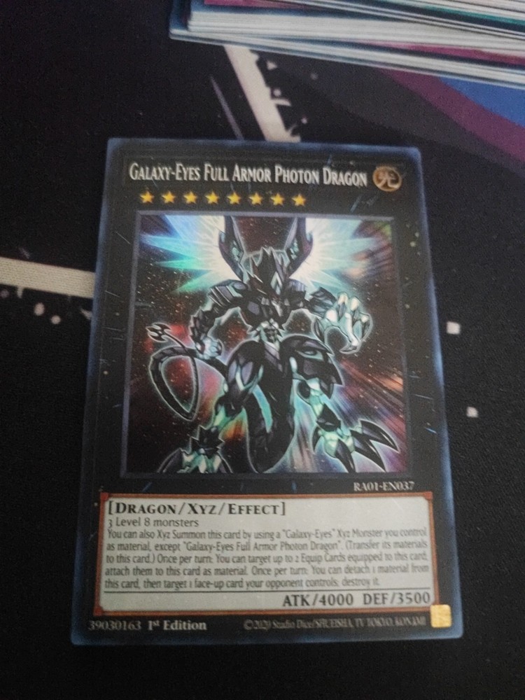 Galaxy-Eyes Full Armor Photon Dragon RA01-EN037 1st Super Rare Rarity Collection. Condition is Ungraded. Shipped with USPS Ground Advantage.