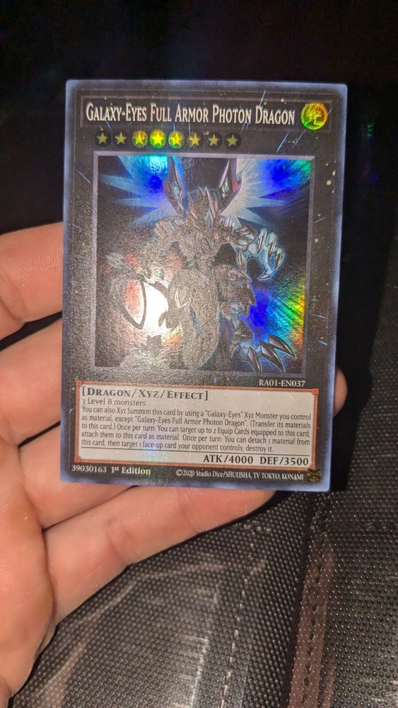 Elevate your Yu-Gi-Oh! TCG collection with the stunning Galaxy-Eyes Full Armor Photon Dragon card. From the 25th Anniversary Rarity Collection, this Super Rare card is a must-have for both serious collectors and competitive players. The card features the formidable Dragon creature type, boasting an attack power of 4000 and a defense strength of 3500. This English-language card, manufactured by Konami, is the 1st Edition of RA01-EN037, showcasing the character Armor in its impressive effect xyz form. Its unique light attribute adds to its strategic value in gameplay. Whether you're looking to enhance your deck or treasure a piece of Yu-Gi-Oh! history, this card is an exceptional choice.