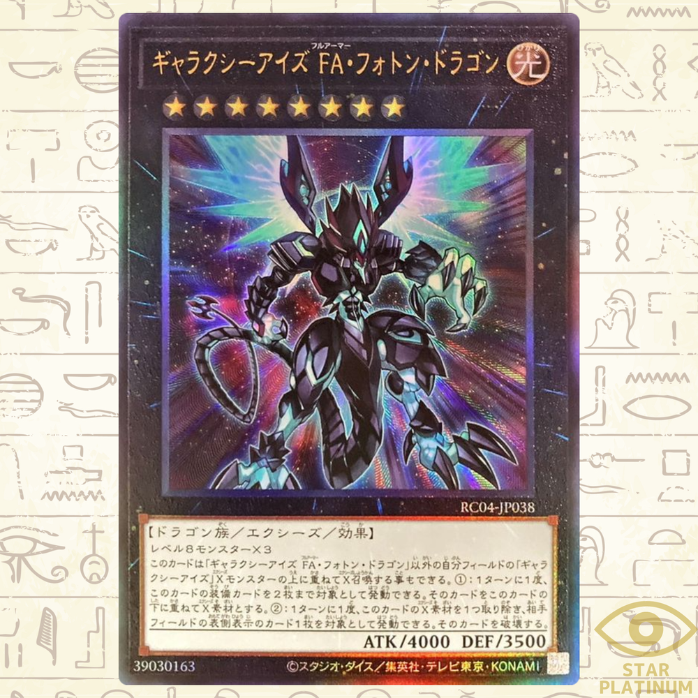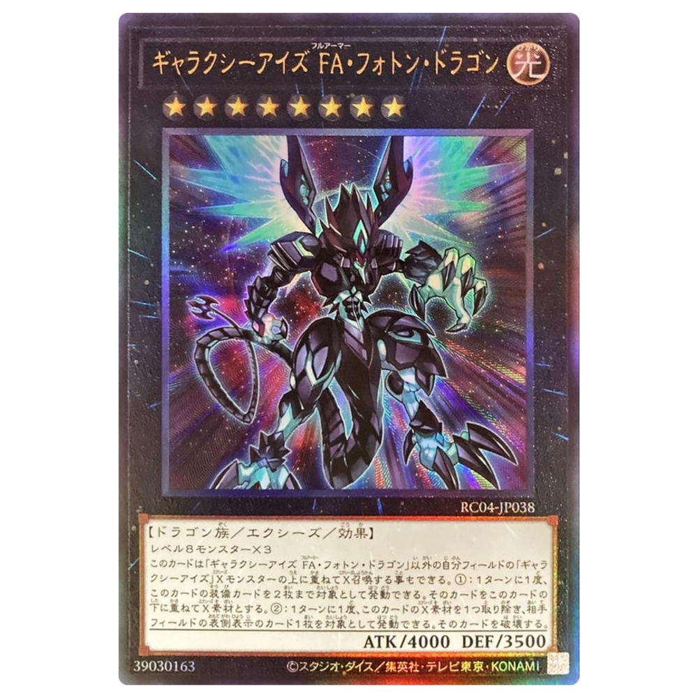 Description Galaxy-Eyes Full Armor Photon Dragon TRUE RC04-JP038 Japanese YuGiOh - NM Condition : Near Mint Condition - As a Trading Cards collector myself, I can check the condition exactly. 【NM】Near Mint (4/4): Display minimal or no wear or damage. All surfaces and edges are pristine and appear “fresh out of the pack. 【EX】Excellent (3/4): Have slight corner and edge wear along with minor scratches on the surface, but no other flaws. 【VG】Very good (2/4): Have discernible flaws such as border and corner wear, noticeable scratches and creases, slight bends, notching, layering, and moderate discoloration or whitening. 【PR】Poor (1/4): Show a massive amount of wear and damage. Corners and edges will be rounded, chipped, or fuzzy, and there will be major discoloration, layering, notching, creasing, and scratches. - I follow “eBay card conditions and guidelines”. - Click here for details : https://pages.ebay.com/cardconditions/ Shipping Economy Shipping Japan Post Air Mail : takes about 1~2 weeks, +Handing time No tracking. Standard Shipping Japan Post Air Mail : takes about 1~2 weeks, +Handing time With tracking. Expedited Shipping FedEx or EMS : takes about 1~4 days, +Handing time With tracking. - Use a loader, waterproof pack, and put it in a cushioned envelope. - You can save shipping fees when you buy multiple items. No charge shipping fees for additional items. International Buyers - Please Note: Import duties, taxes and charges are not included in the item price or shipping charges. These charges are the buyer's responsibility. Please check with your country's customs office to determine what these additional costs will be prior to bidding/buying. These charges are normally collected by the delivering freight(shipping) company or when you pick the item up -do not confuse them for additional shipping charges. We do not mark merchandise values below value or mark item as "gift" -US and international government regulations prohibit such behavior.