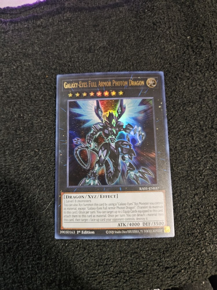 Absolutely love this Galaxy-Eyes Full Armor Photon Dragon card! The Ultra Rare print looks stunning, and the condition is pristine—just as described. Seller was super responsive and shipped quickly. Great price for such a powerful and eye-catching card. Highly recommend checking out their other listings too! Smooth transaction all around.