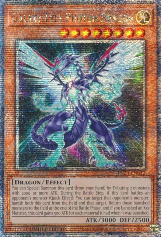 Selling Galaxy-Eyes Photon Dragon [A] Sealed TN23-EN012 Quarter Century Rare 1st Edition Will be delivered in a sleeved, in a top loader card protector. Message me with any enquiries. Excellent Rated Seller Feedback. Our images are stock photos from a database and will not represent the exact card you order. If the Image Does not match the listing title (edition, rarity or variaiton) please just message and I will confirm for you. If you require any additonal photos please also just ask as I will be happy to help. Condition is "Good Condition", unless stated otherwise. If you require clarification of the condition of the exact card you're ordering, please enquire.
