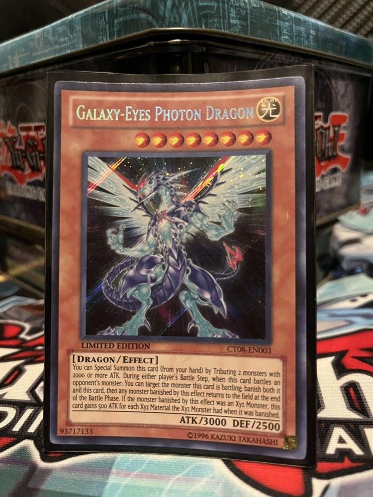 Galaxy-Eyes Photon Dragon - CT08-EN003 - Secret Rare [Mint!] Limited Edition. All items will be sent using, (USPS First Class) shipping. Expect within (1-2 Business Days) Items will be protected within card sleeve & top loader guard, inside the package. Please leave your positive feedback when you receive your package.