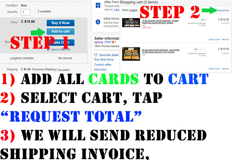 HUGE INVENTORY ON OUR WEBSITE . FOR MORE INFORMATION. Follow us for updates, notices, and special deals. To do this please click Save on our storefront. ALSO,on our Instagram page @ ayasarchive for your daily YGO Eye Candy from our collection. Feedback Feedback is Given , once Feedback is Left . ;) For flash deals, follow our store, and subscribe to our email list. New cards every week. Shipping Shipping within Canada: (3-8 business days) Shipping from Canada to the U S A : (7-15 business days) We treat our cards and shipping process with the utmost importance, every delivery is recorded in our database. Every transaction is monitored. For future reference, if any disputes were to arise, documentation will be provided. These cards are : Shipped within 1 Business day. 100% authentic, tournament legal cards! Near Mint Condition, unless specified. Shipped sleeved and in a toploader! Delivery Delays: Suggested delivery range from eBay is not always accurate. Delays can be caused by many factors which are out of our control ie: Weather, customs, government disruption, strikes ...etc We ship our cards out within 1 business day by dropping them off at the Canadian post office. Thank you for understanding. Guide Mint ( NM/M ): No apparent imperfections; possible light scratches on surface. Has crisp corners, and unblemished edges. Near Mint ( NM) MAY contain very minor imperfection, possible light scratches on surface, 1-2 light blemish on edges of card, if you need please inquire for more photos Near Mint ( NM/VLP) MAY contain some minor imperfection, possible light scratches on surface, light blemish on edges of card Light Play (LP): Light edgewear or corner wear and/or multiple small bends/creases/dents. Moderate Play (MP): Very visible condition issues visible at a casual glance; border wear, corner wear, scratching or scuffing, creases or whitening, minor dirt buildup, water damage, etc. Heavy Play ( HP ): Major/multiple bends, creases, and/or dents throughout card, heavy border wear, tearing. Damaged (DMG) : The card is damaged, please refer to the picture in the listing for the location of the damage. (Even when sleeved, These cards cannot be used in official tournaments .) CANT FIND WHAT YOU'RE LOOKING FOR? Our website has a large selection, included many unlisted cards. If you want it, we may have it. Private message us or DM us on instagram. Much love for choosing AYATCG. Be sure to check out our store for more CARDS & SLEEVES, CLICK HERE