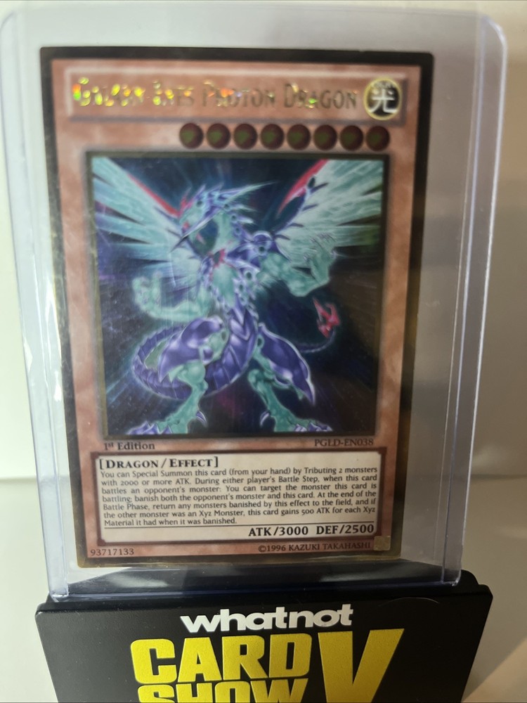 Elevate your Yu-Gi-Oh! TCG collection with the stunning Galaxy-Eyes Photon Dragon card, a Gold Rare gem from the Premium Gold set. This card, numbered PGLD-EN038, features the illustrious Aayla Secura and boasts an impressive 2500 defense, coupled with a formidable 3000 attack power. Crafted by Konami and foiled with a radiant finish, this Effect-type dragon card is a must-have for both serious collectors and strategic players. The card is a first edition, non-autographed piece, secured with a Standard card size on premium card stock. Embrace the light attribute of this iconic creature and make a dazzling addition to your deck.