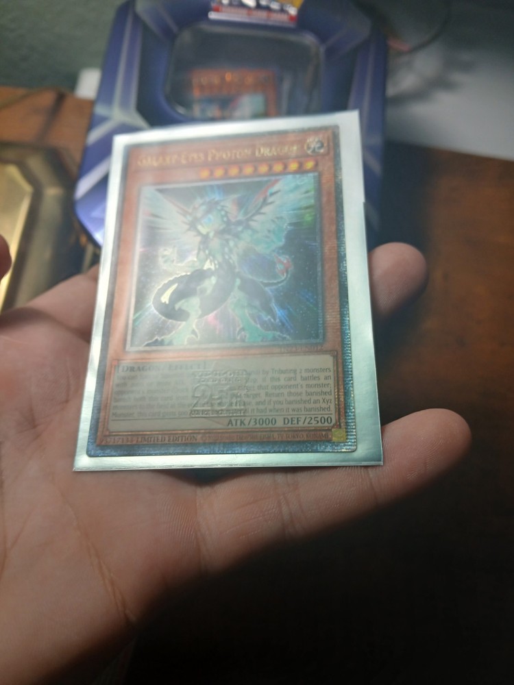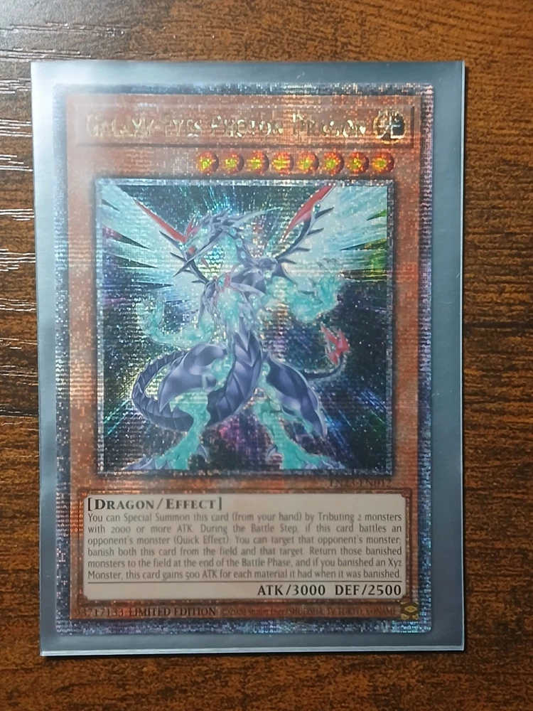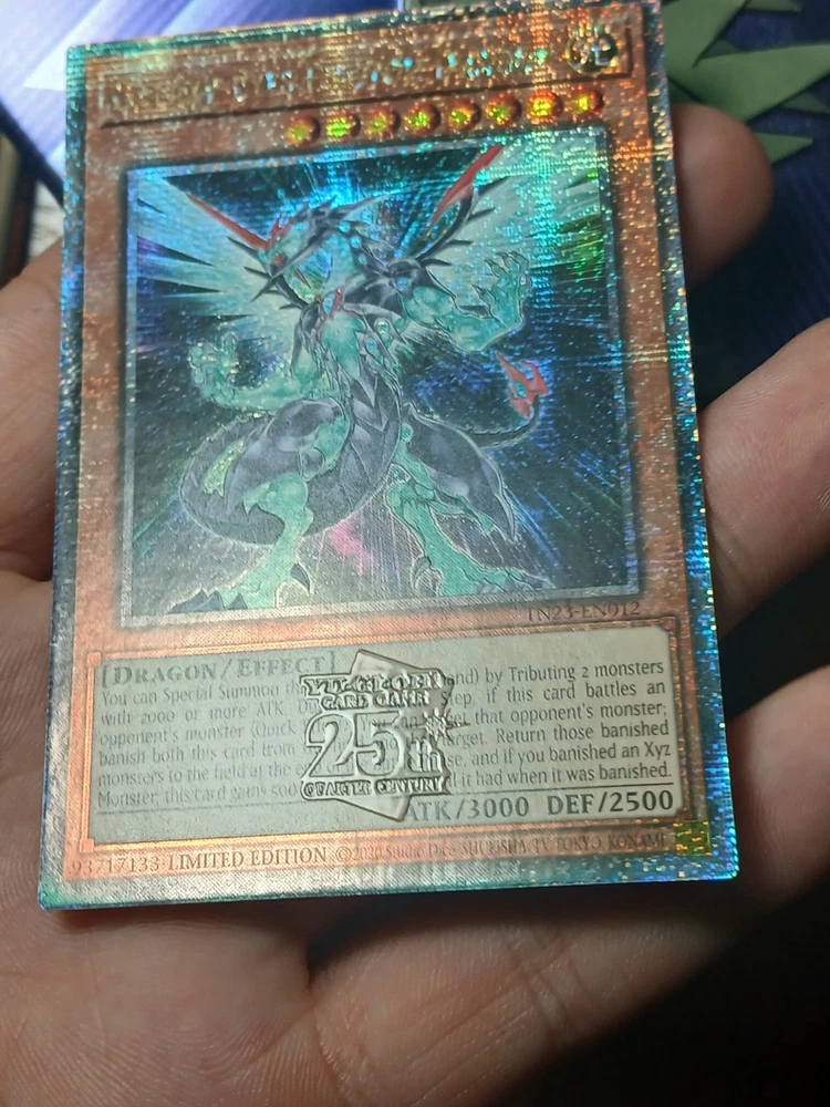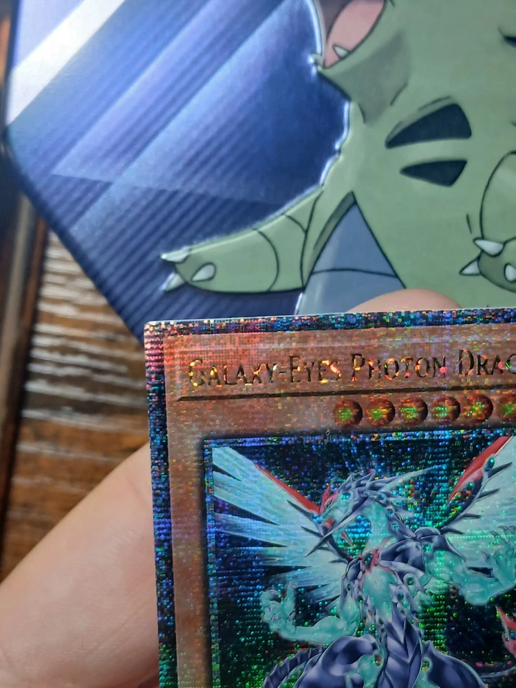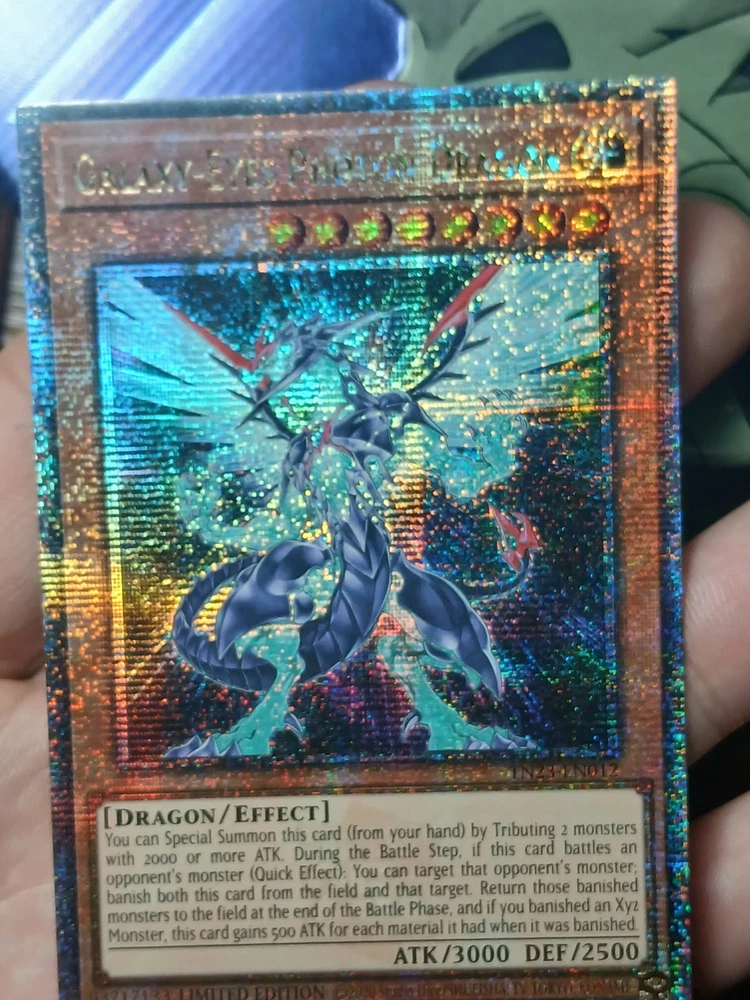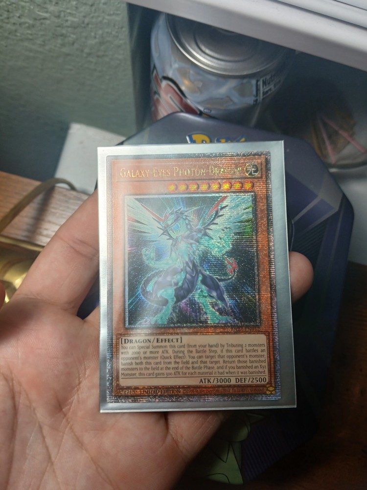 Just opened and Sleeved. Comes Sleeved. Elevate your Yu-Gi-Oh! TCG collection with the stunning Galaxy-Eyes Photon Dragon from the 25th Anniversary Tin: Dueling Heroes set. This card, featuring the mighty dragon creature type, boasts an eye-catching Holo finish that's sure to dazzle opponents and onlookers alike. As a Quarter Century Secret Rare (QCR) edition, it's a must-have for collectors seeking to commemorate the game's rich history. The Galaxy-Eyes Photon Dragon card, numbered TN23-EN012, is presented in English and designed for players aged 6 and up. It's crafted from quality card stock and maintains the standard card size for seamless integration into your deck. With its 1st Edition status and Effect speciality, this card is a formidable addition to any dueling arsenal, ready to unleash the power of light onto the battlefield.