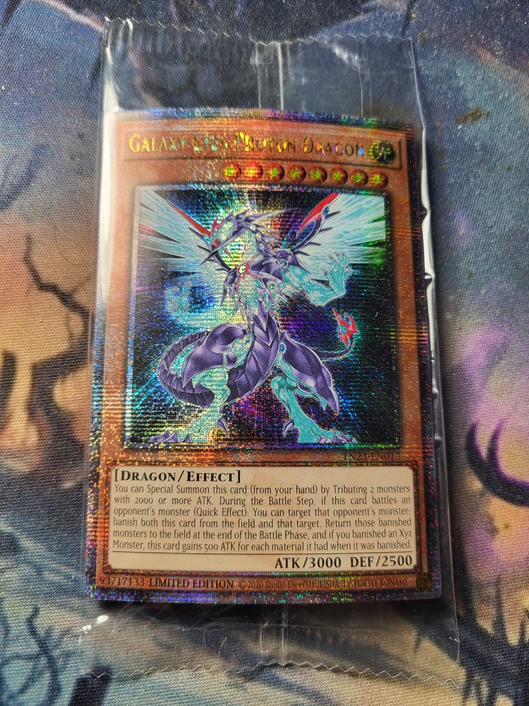 Elevate your Yu-Gi-Oh! TCG collection with the stunning Galaxy-Eyes Photon Dragon, a Quarter Century Secret Rare card that boasts an exquisite foil finish. This effect-type card, numbered TN23-EN012, is a must-have for players and collectors alike, featuring the formidable creature/monster type of Dragon. Produced by the renowned Konami, this limited edition card is a true gem for anyone looking to enhance their deck or display. The Galaxy-Eyes Photon Dragon card captures the essence of strategy and power in the Yu-Gi-Oh! universe. Without an autograph, it maintains its classic appeal, ensuring that it fits seamlessly into your collection or gameplay repertoire. Revel in the card's impressive artwork and consider the impact it could have in your next duel.
