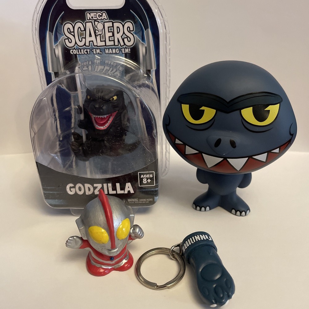 Kid Robot Godzilla 1954 Figure with "Bhunny" Paw keychain NECA Scaler in package Ultraman mini to help fight Godzilla...
