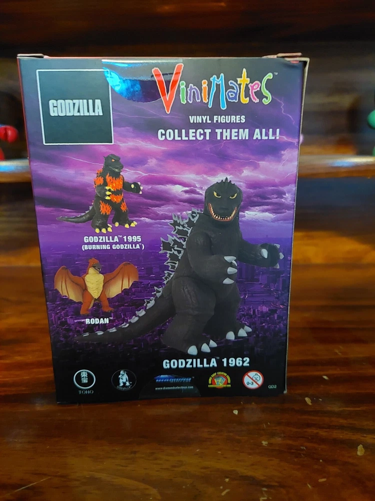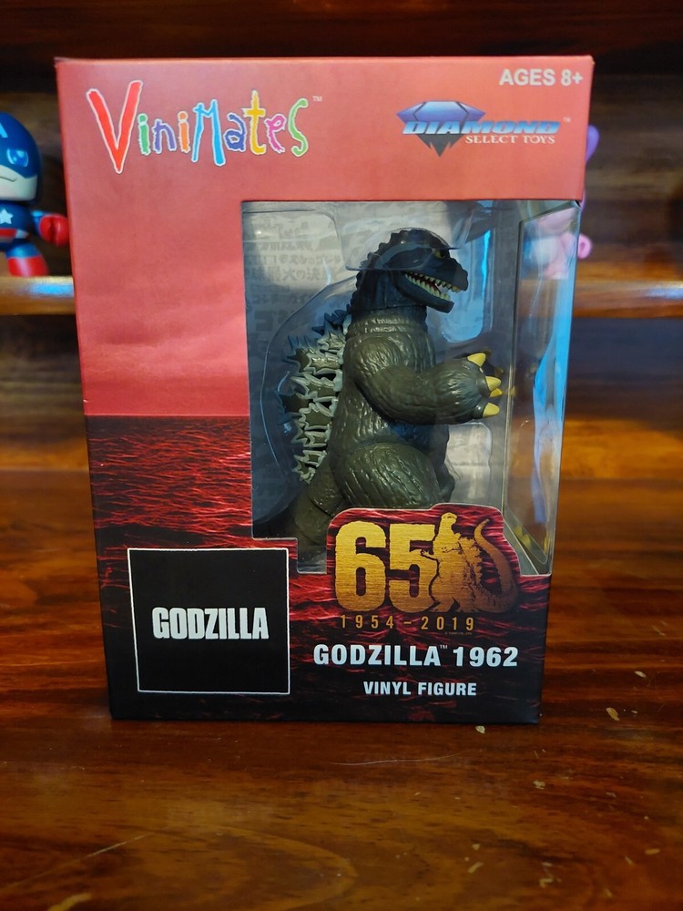 This listing is for the BAM Exclusive 65th Anniversary Godzilla 1962 Vinyl Figure , manufactured by Vinimates a division of Daimond Select Toys. This figure is new in the box has never been opened has a slight ding on the back right top corner see pics , will be a great addition for the Godzilla Collector. Please check out our other listing and request a total when purchasing multiple items and we will do our best to combine shipping. Please note when buying comics and toys it is hard for us to ship them together and maintain damage free travel to you. Thank you for stopping by please ask any questions before buying!